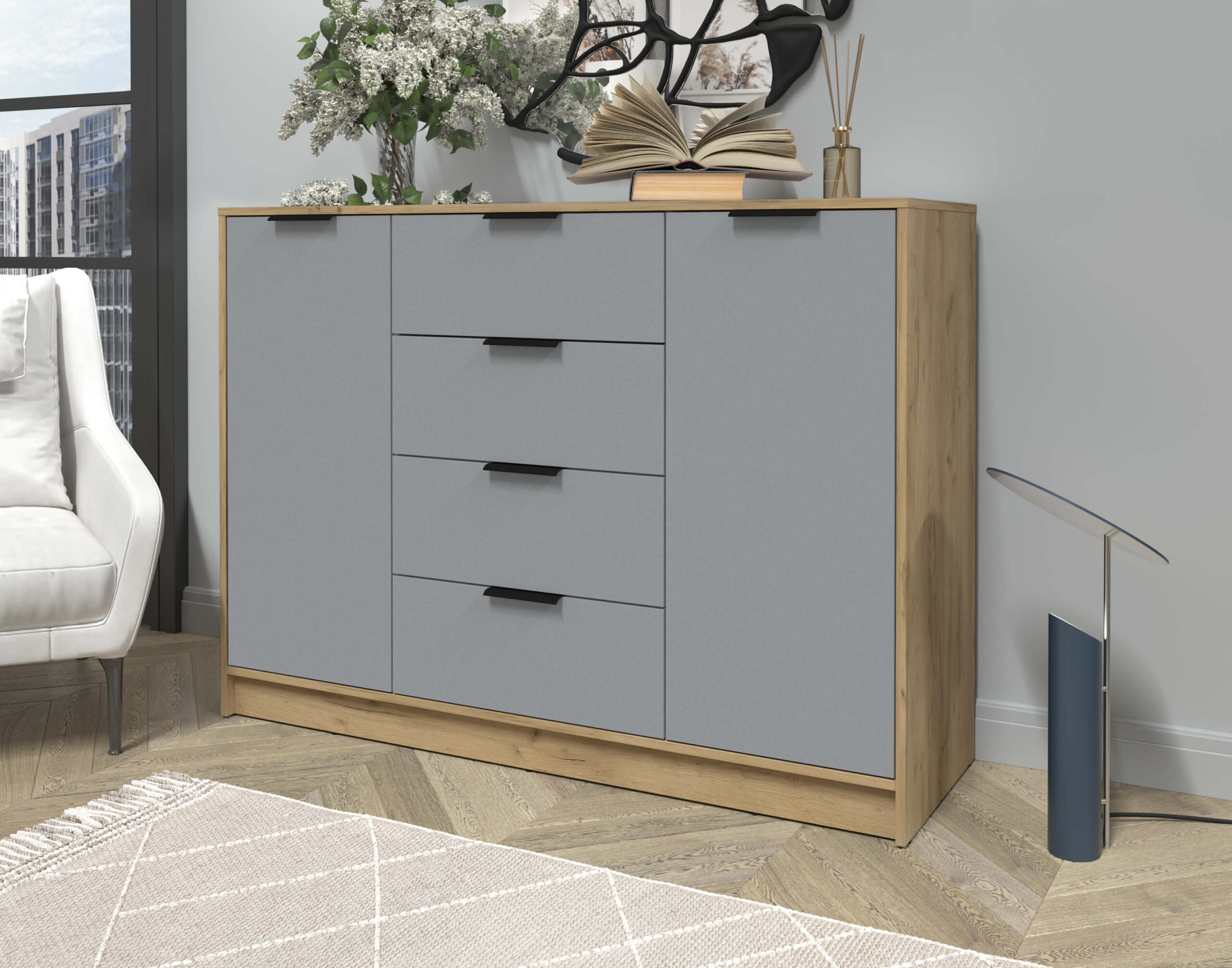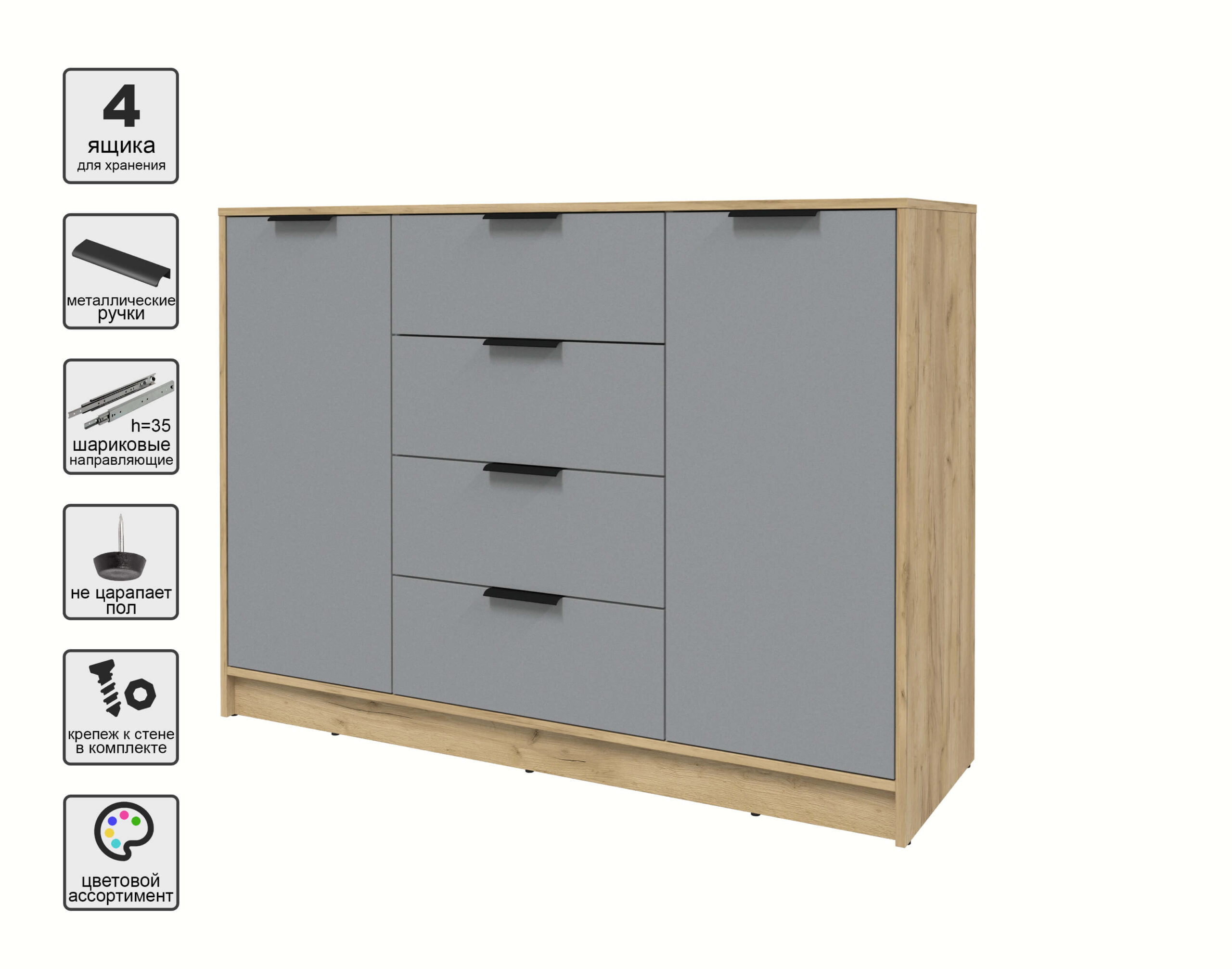 ТУМБА КТ-Т140 (ДУБ ЗОЛОТОЙ ЛДСП/ СЕРЕБРО ЛДСП) Ш1400 В1020 Г451 - Yuta.by