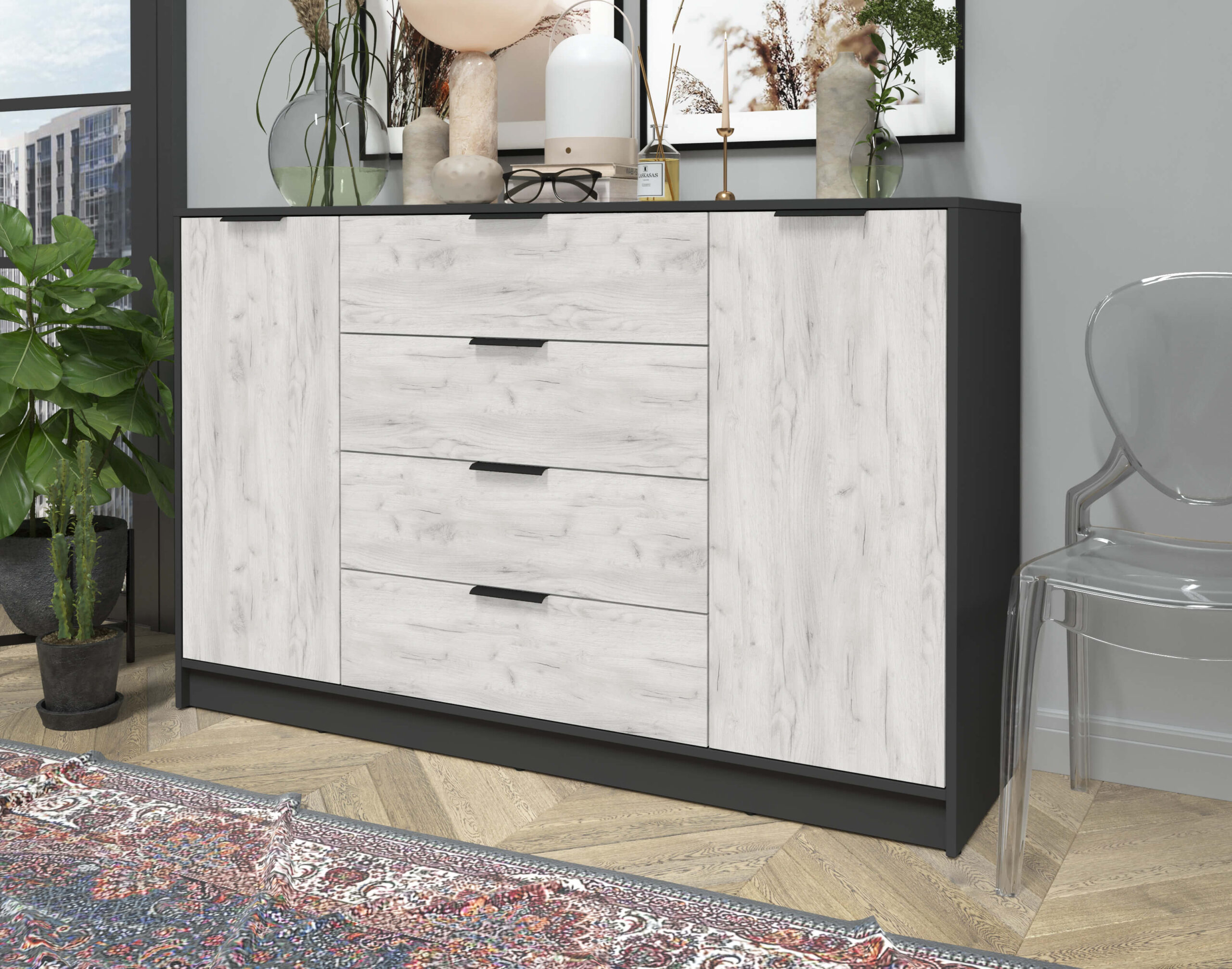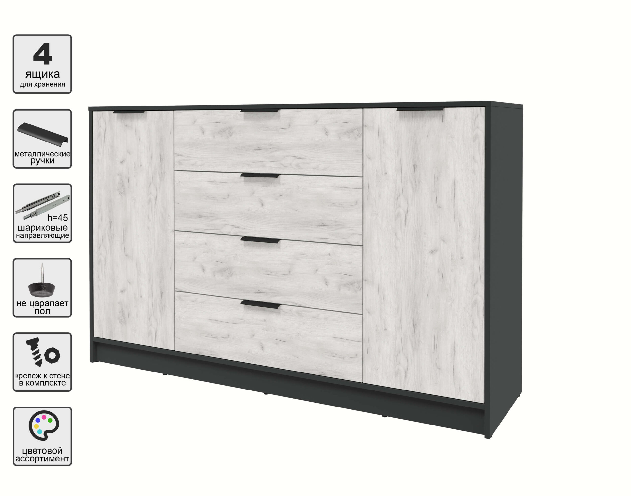 ТУМБА КТ-Т160 (АНТРАЦИТ ЛДСП/ ДУБ БЕЛЫЙ ЛДСП) Ш1600 В1020 Г451 - Yuta.by