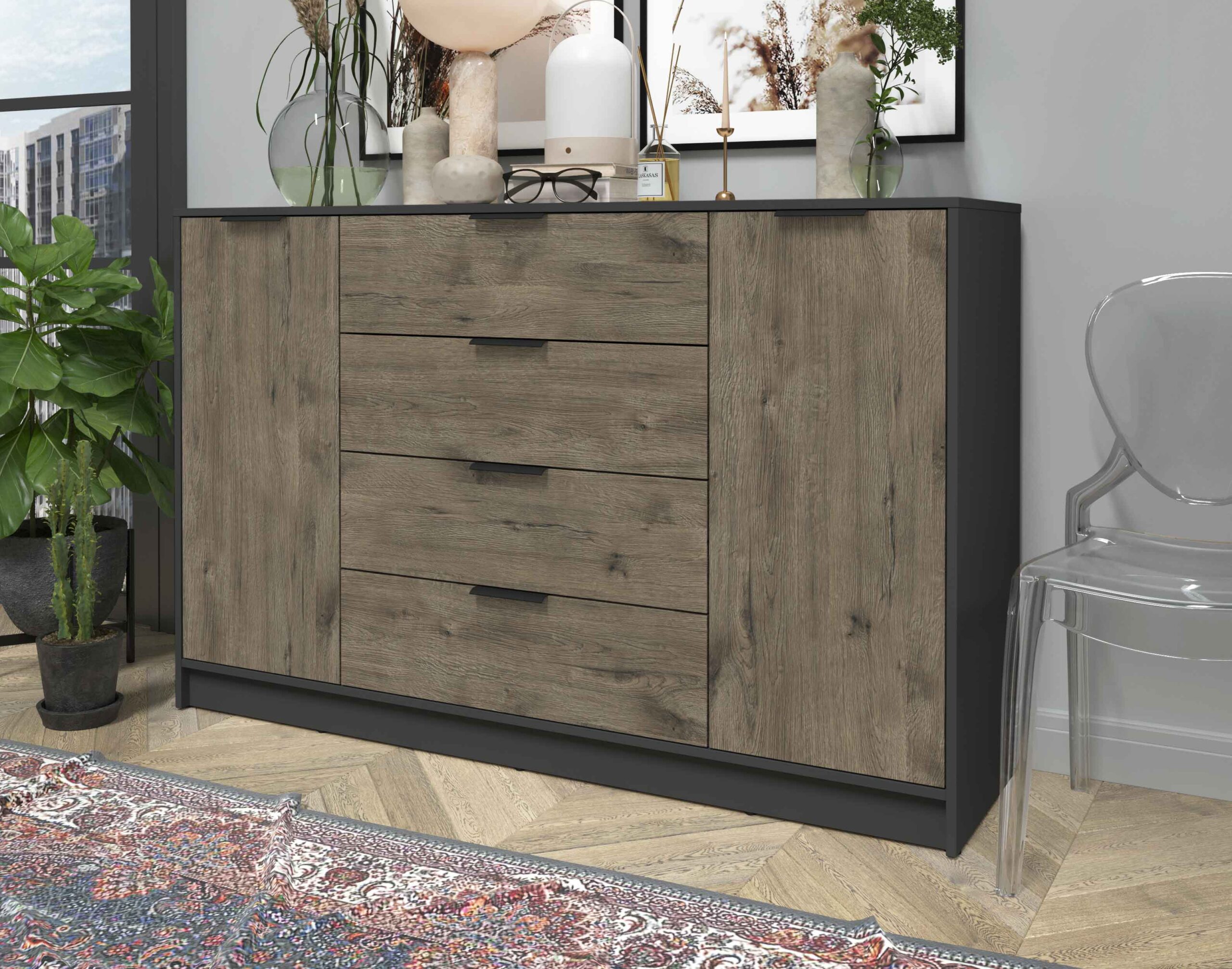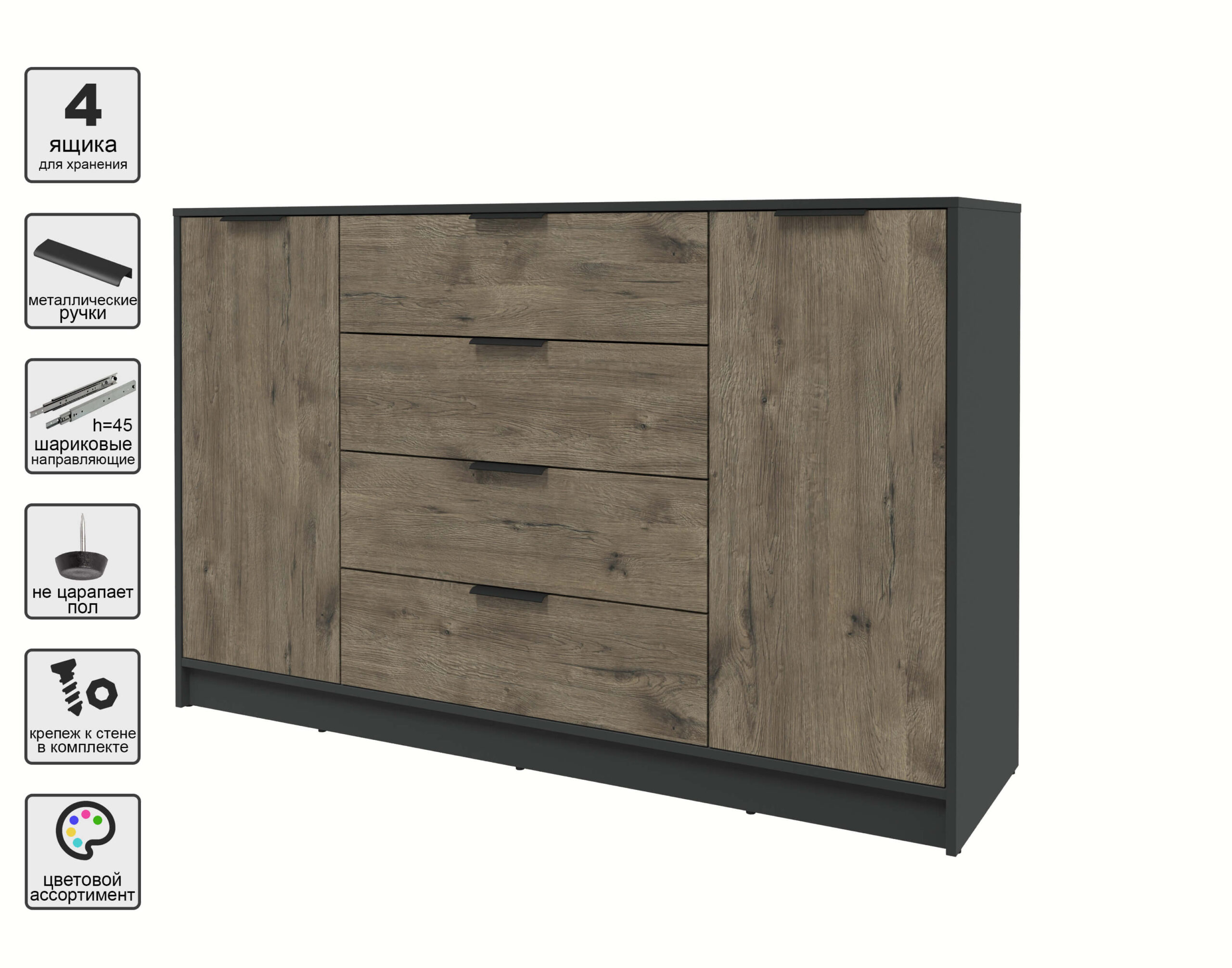 ТУМБА КТ-Т160 (АНТРАЦИТ ЛДСП/ ДУБ ВЕЛЛИНГТОН ЛДСП) Ш1600 В1020 Г451 - Yuta.by