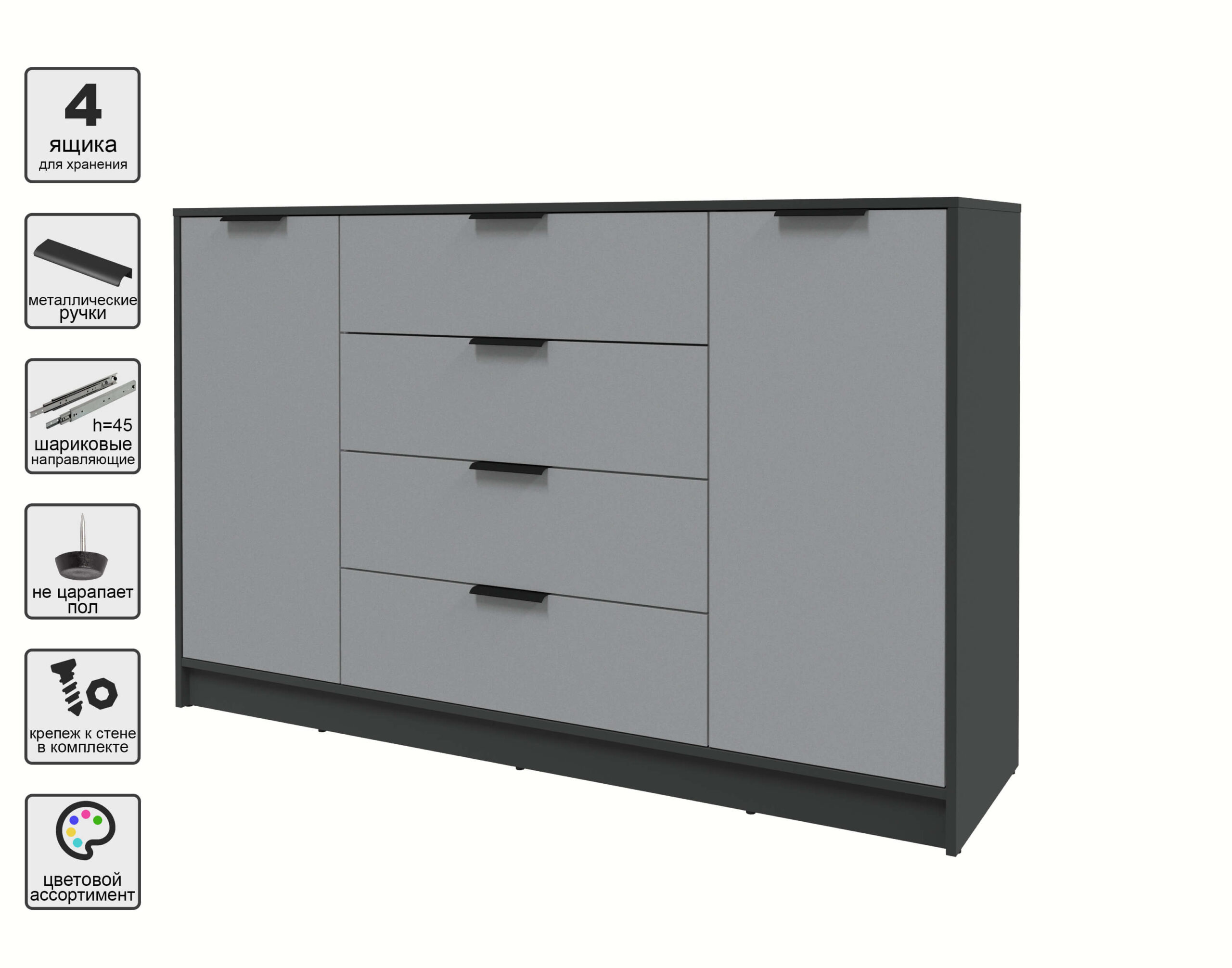 ТУМБА КТ-Т160 (АНТРАЦИТ ЛДСП/ СЕРЕБРО ЛДСП) Ш1600 В1020 Г451