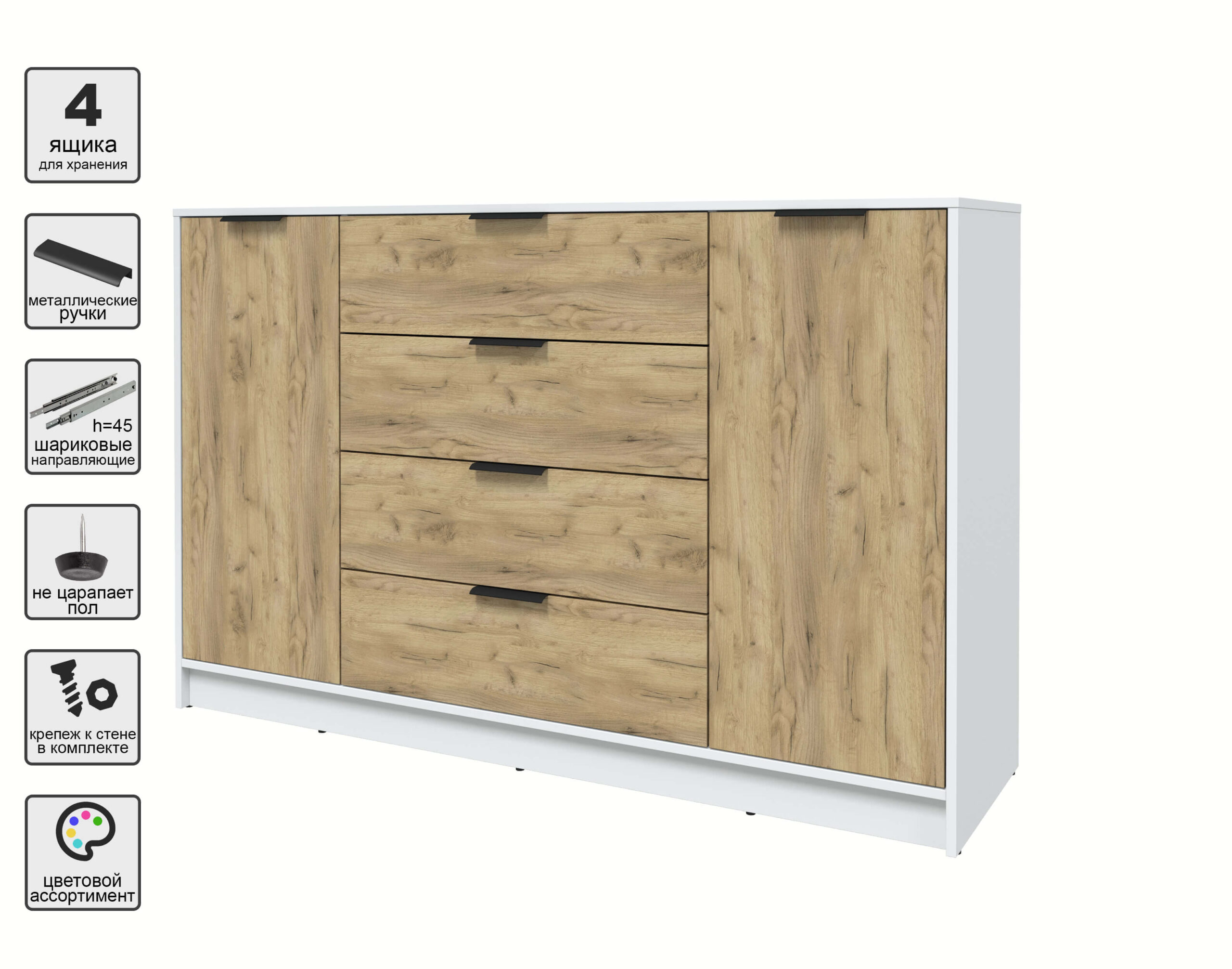 ТУМБА КТ-Т160 (БЕЛЫЙ ЛДСП/ ДУБ ЗОЛОТОЙ ЛДСП) Ш1600 В1020 Г451 - Yuta.by