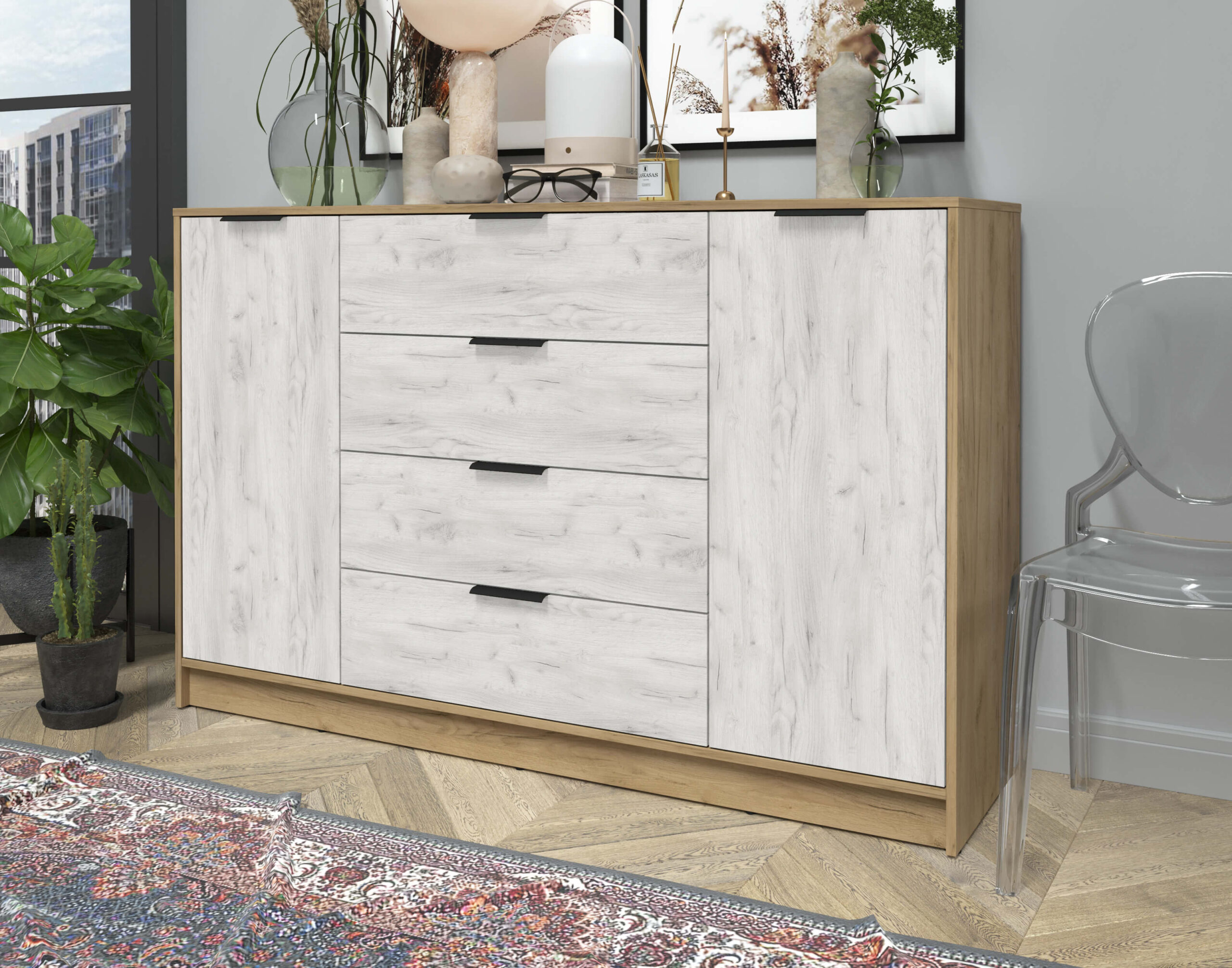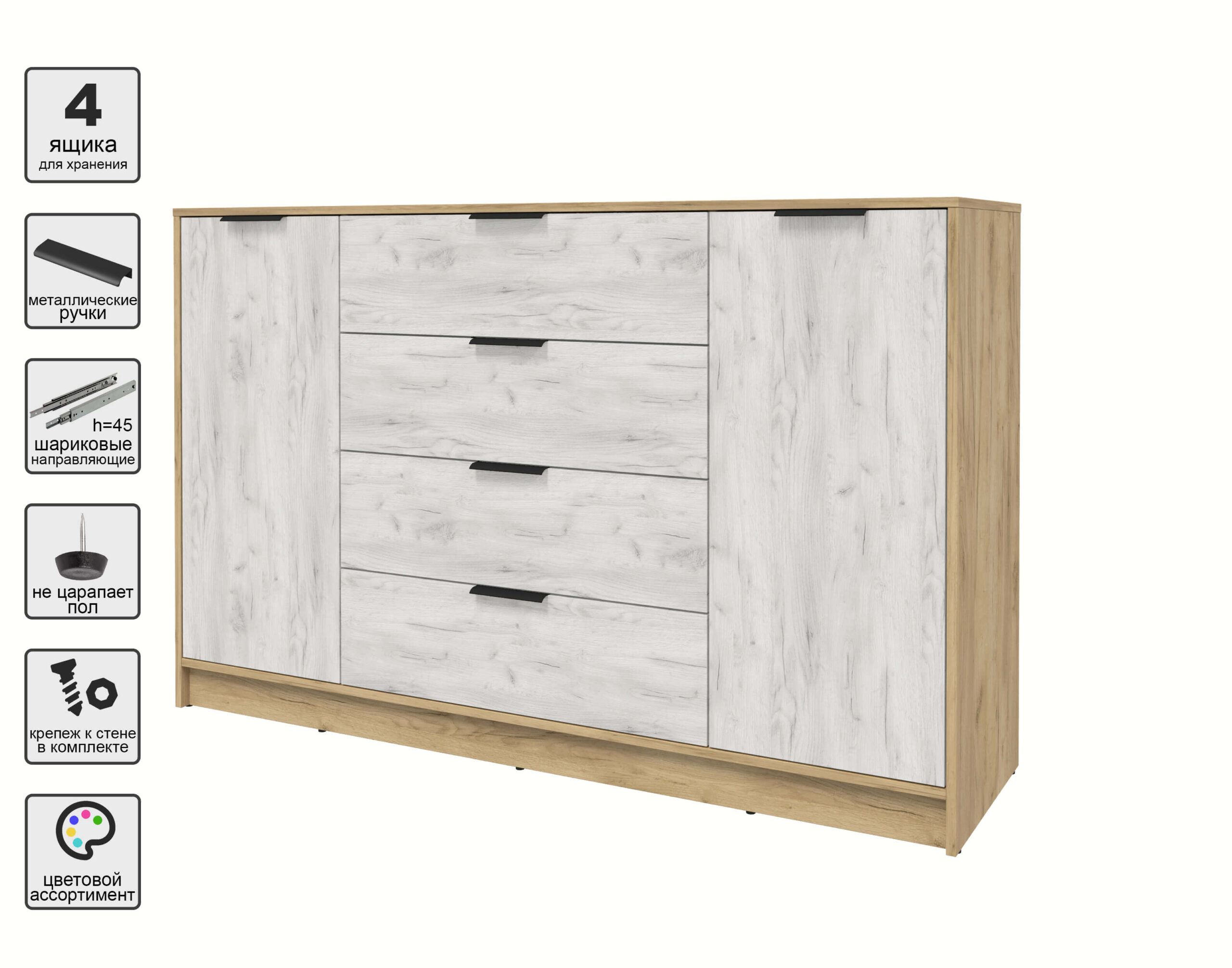 ТУМБА КТ-Т160 (ДУБ ЗОЛОТОЙ ЛДСП/ ДУБ БЕЛЫЙ ЛДСП) Ш1600 В1020 Г451 - Yuta.by