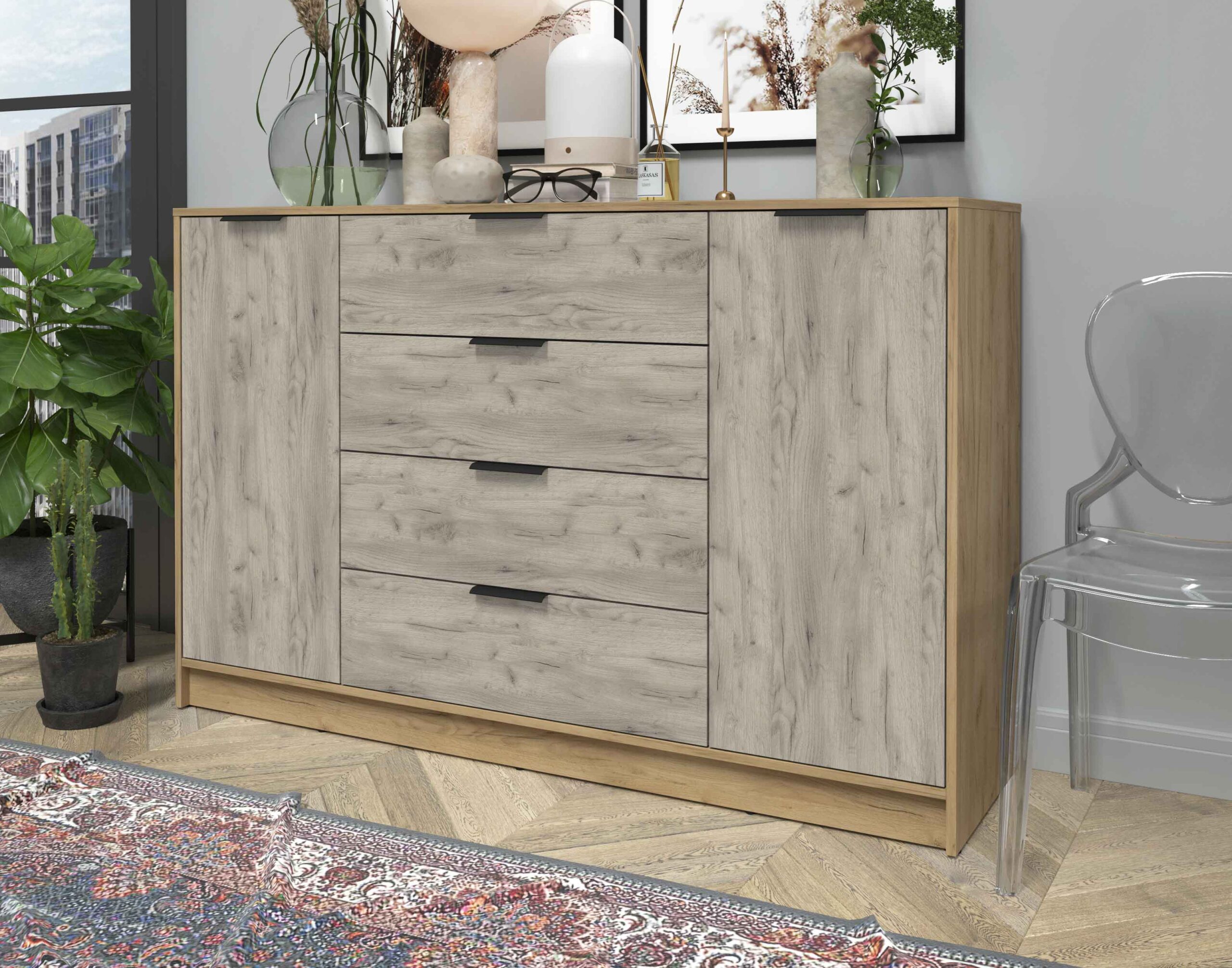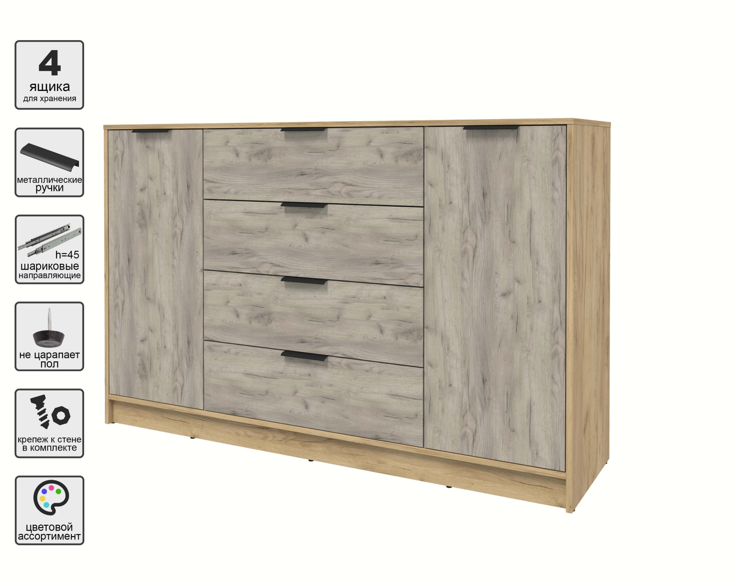 ТУМБА КТ-Т160 (ДУБ ЗОЛОТОЙ ЛДСП/ ДУБ СЕРЫЙ ЛДСП) Ш1600 В1020 Г451 - Yuta.by