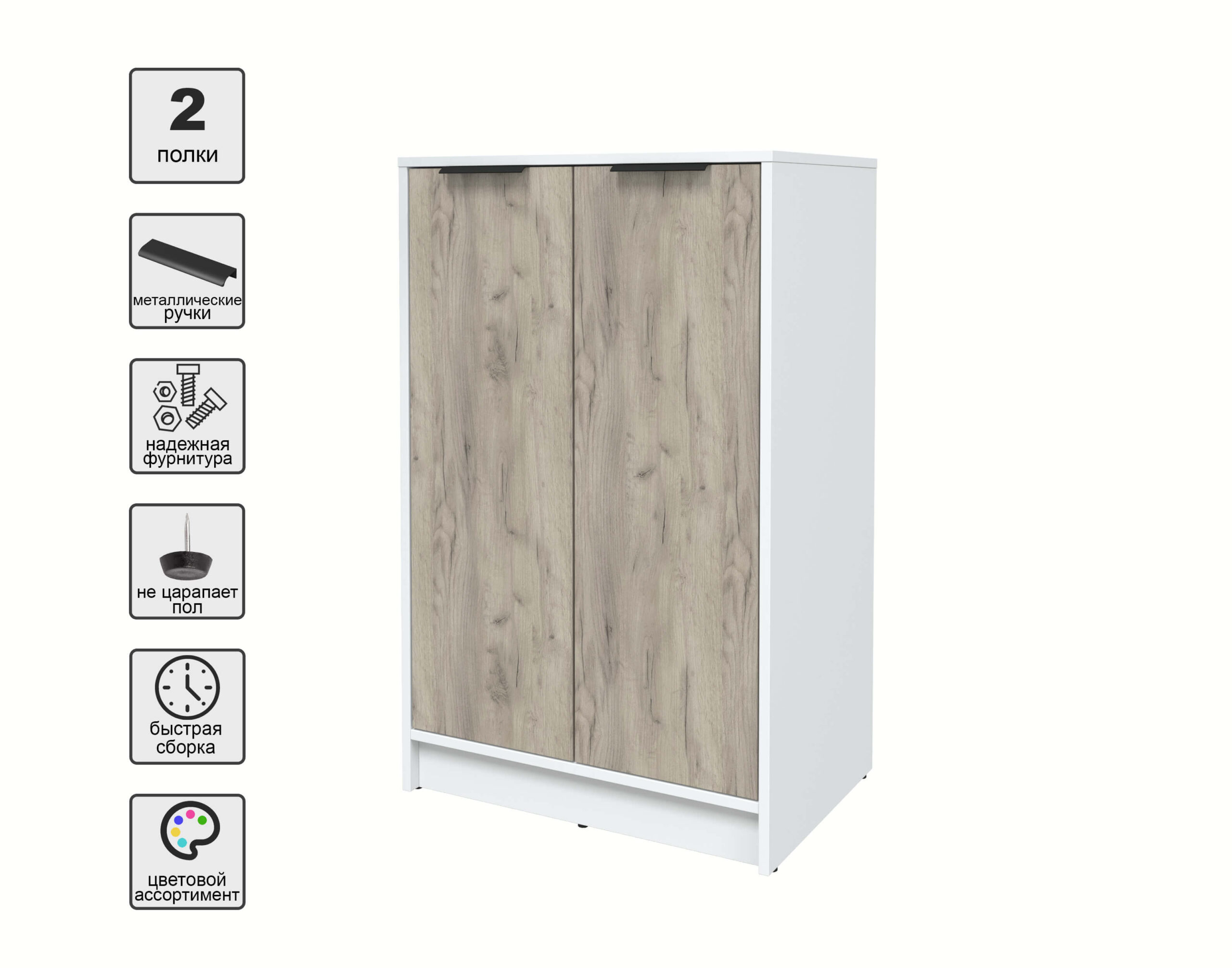 ТУМБА КТ-Т64 (БЕЛЫЙ ЛДСП/ ДУБ СЕРЫЙ ЛДСП) Ш636 В1020 Г451 - Yuta.by