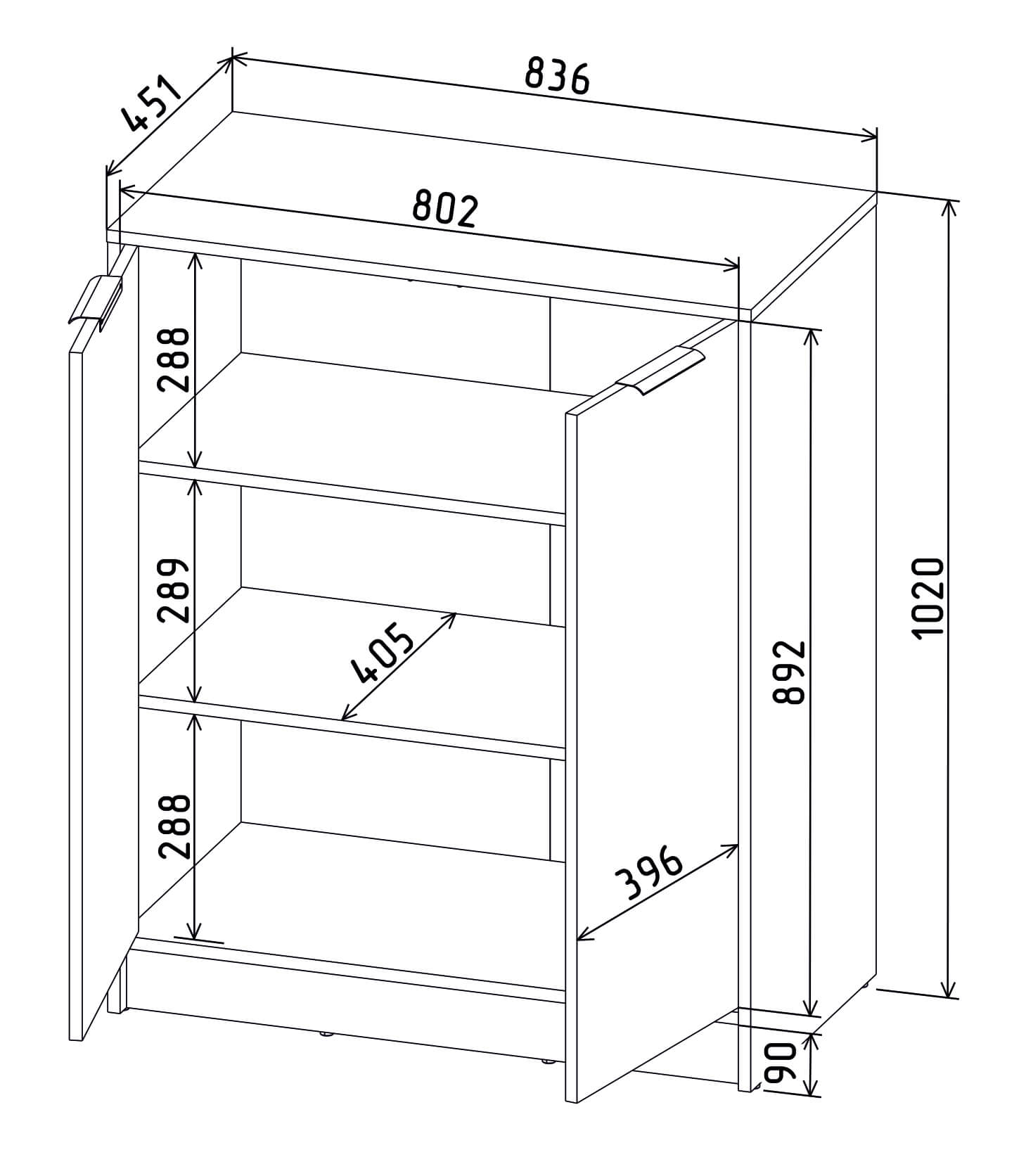 ТУМБА КТ-Т84 (АНТРАЦИТ ЛДСП/ СЕРЫЙ ЛДСП) Ш836 В1020 Г451
