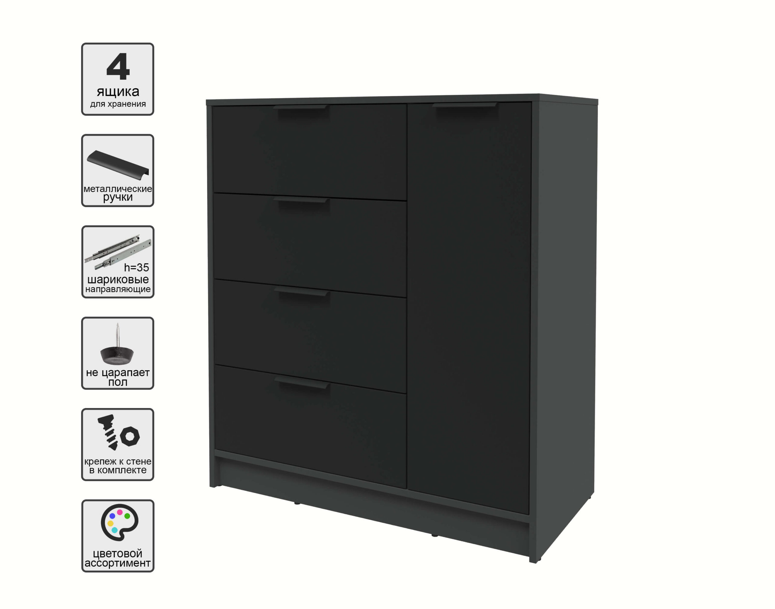 ТУМБА КТ-Т90 (АНТРАЦИТ ЛДСП/ ЧЕРНЫЙ ЛДСП) Ш900 В1020 Г451 - Yuta.by