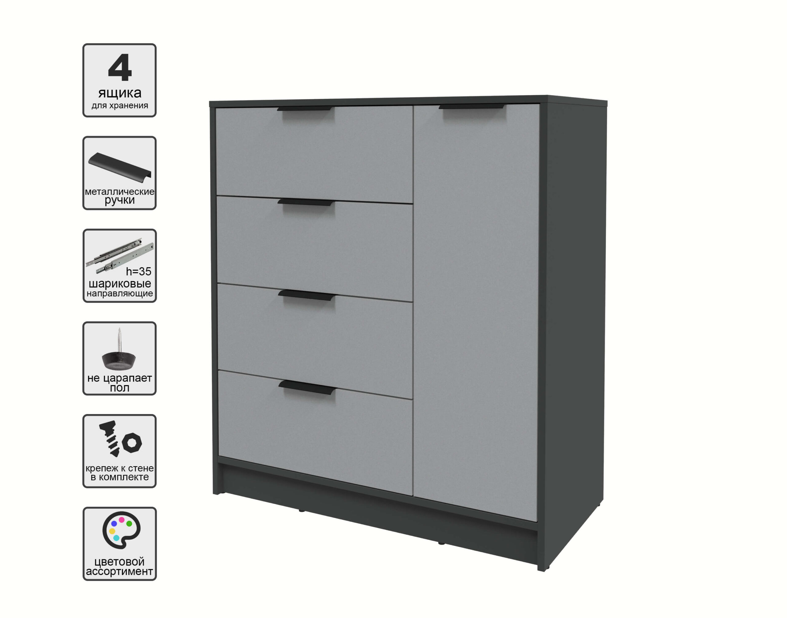 ТУМБА КТ-Т90 (АНТРАЦИТ ЛДСП/ СЕРЕБРО ЛДСП) Ш900 В1020 Г451 - Yuta.by