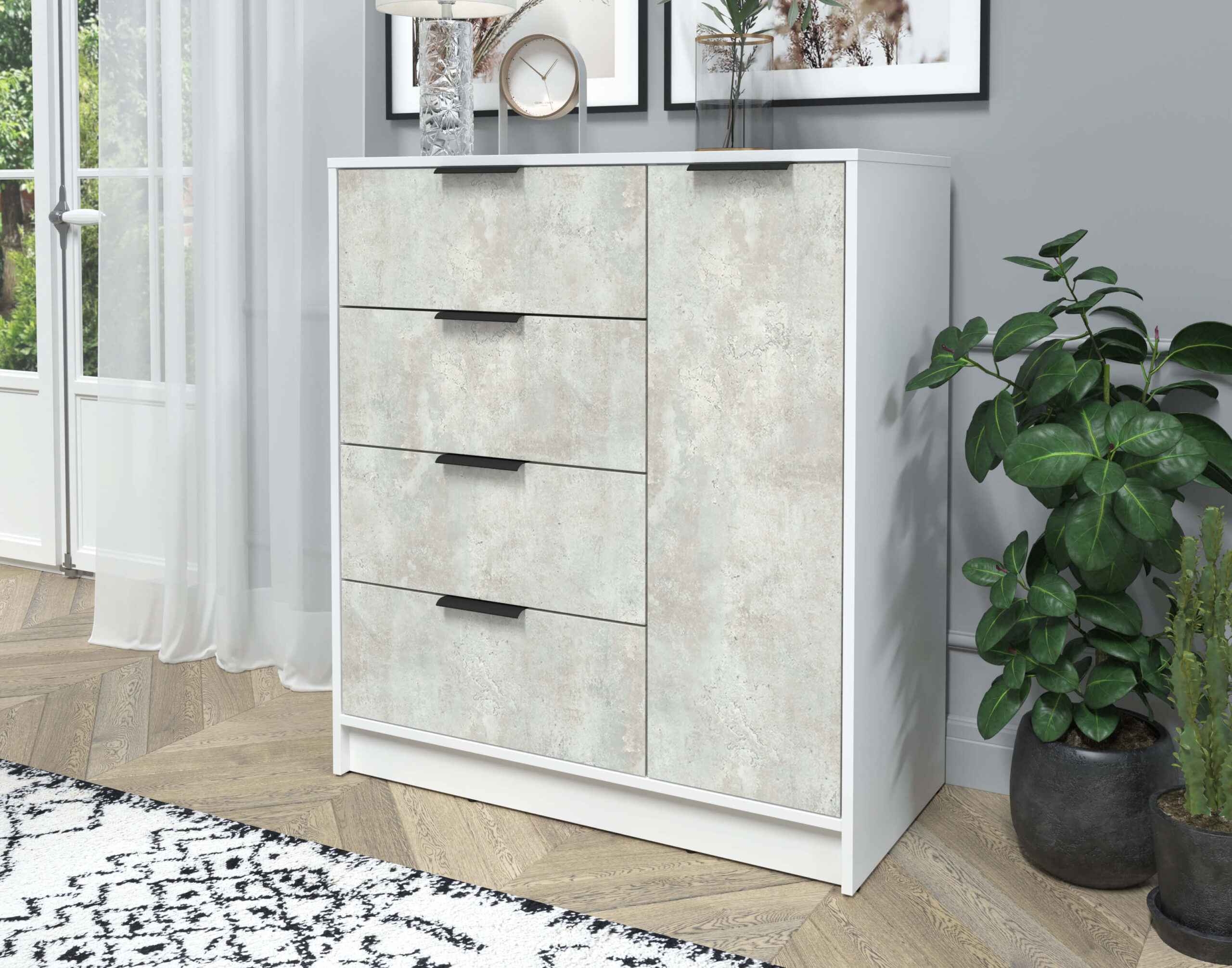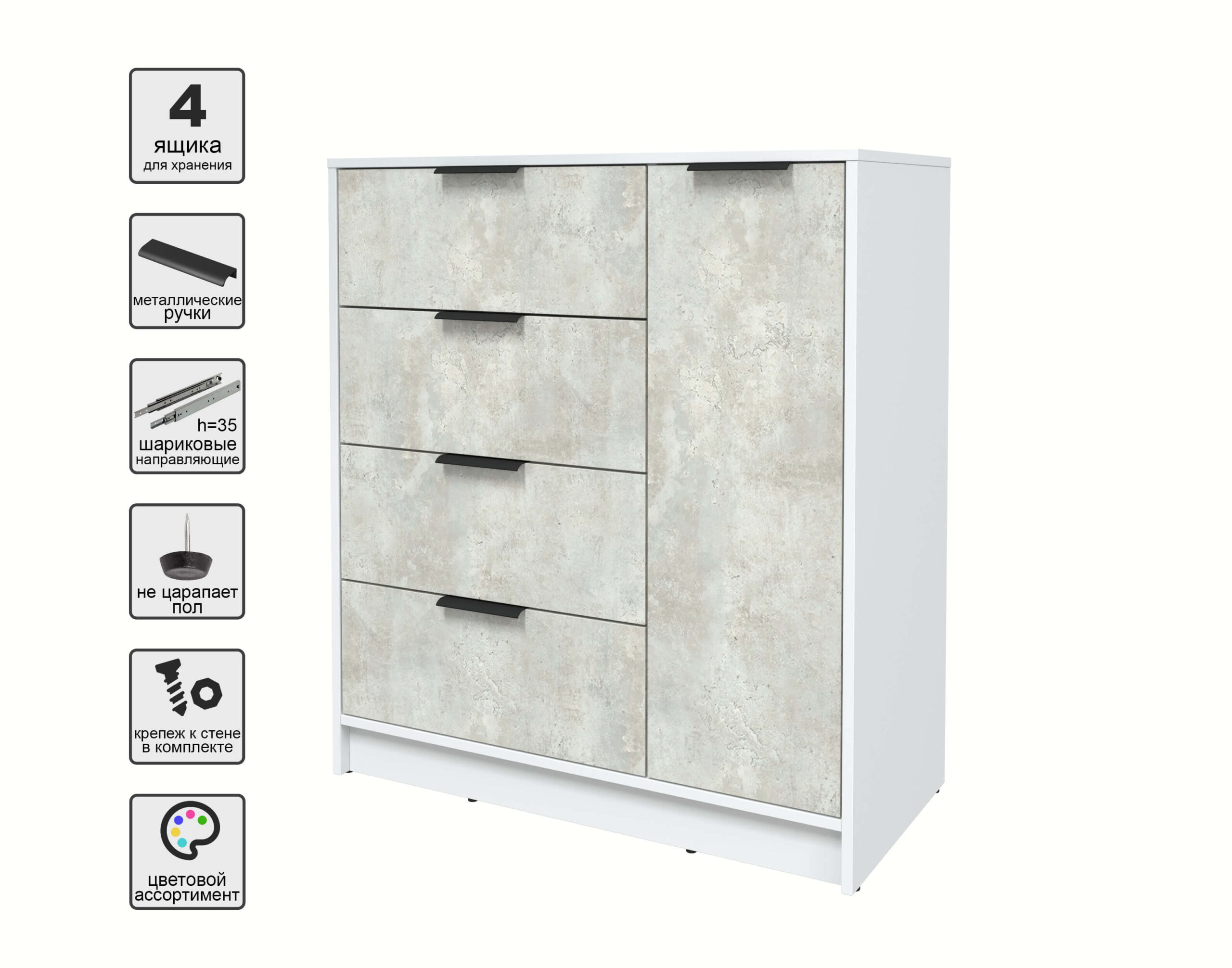 ТУМБА КТ-Т90 (БЕЛЫЙ ЛДСП/ БЕТОН ЛАЙТ ЛДСП) Ш900 В1020 Г451 - Yuta.by