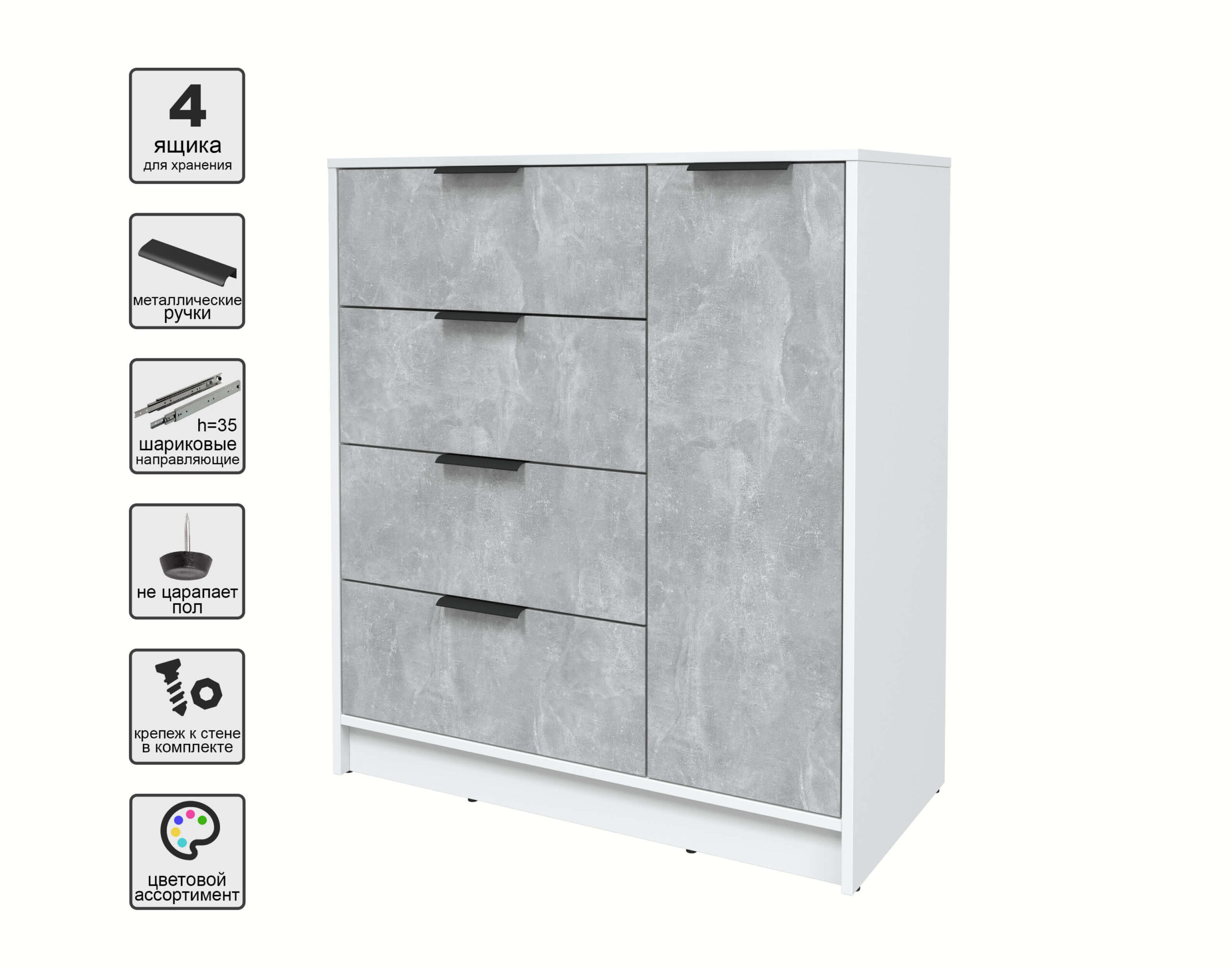 ТУМБА КТ-Т90 (БЕЛЫЙ ЛДСП/ БЕТОН ЛДСП) Ш900 В1020 Г451