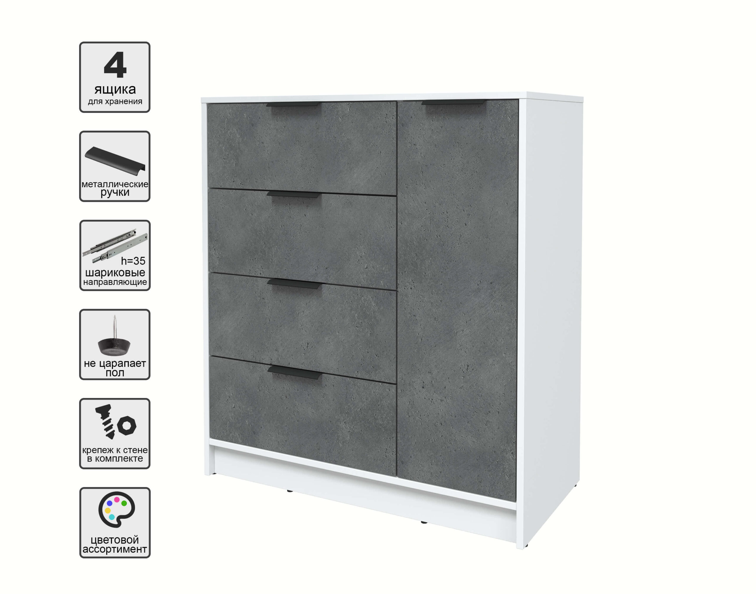 ТУМБА КТ-Т90 (БЕЛЫЙ ЛДСП/ БЕТОН ПОРТЛЕНД ЛДСП) Ш900 В1020 Г451 - Yuta.by