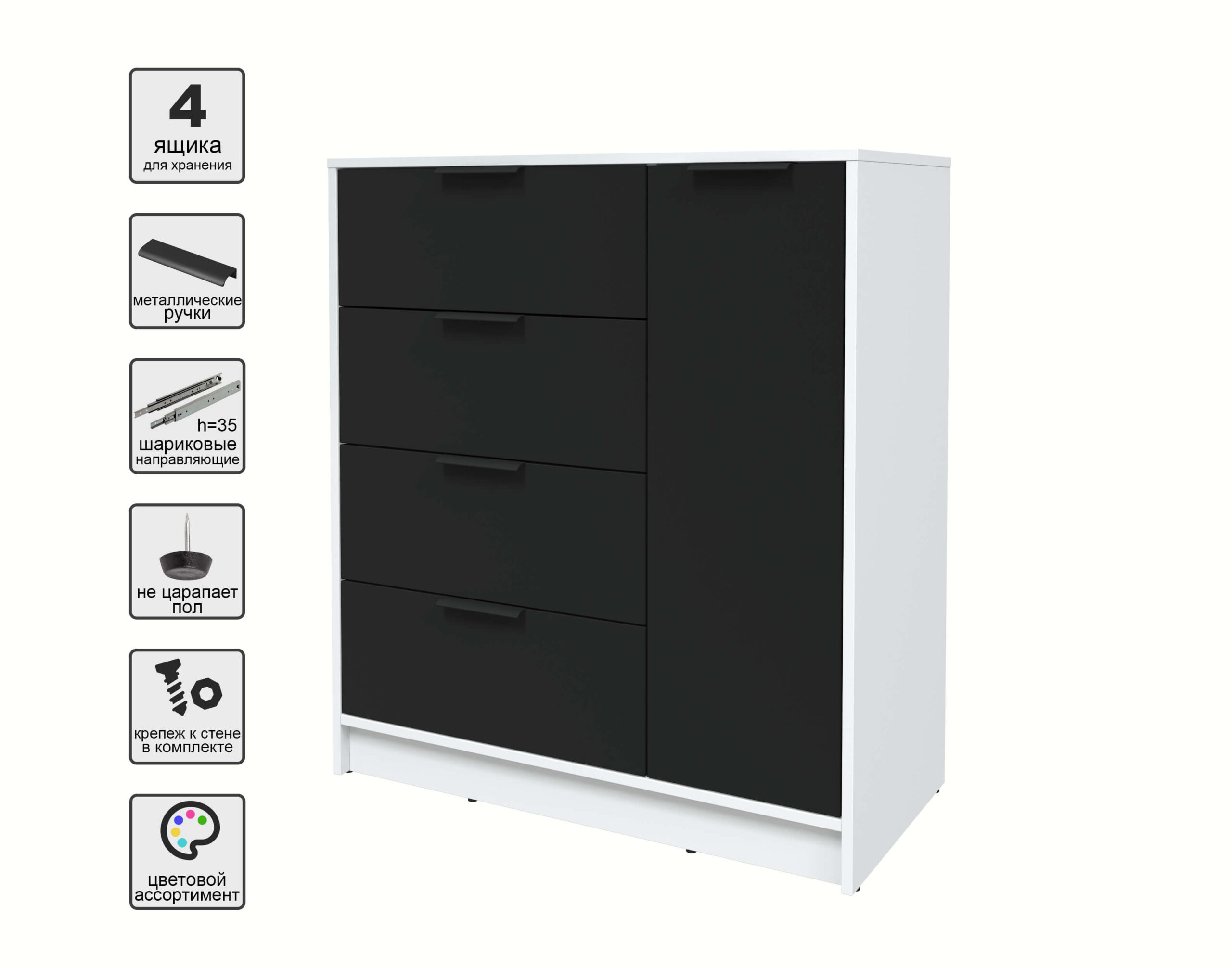 ТУМБА КТ-Т90 (БЕЛЫЙ ЛДСП/ ЧЕРНЫЙ ЛДСП) Ш900 В1020 Г451 - Yuta.by