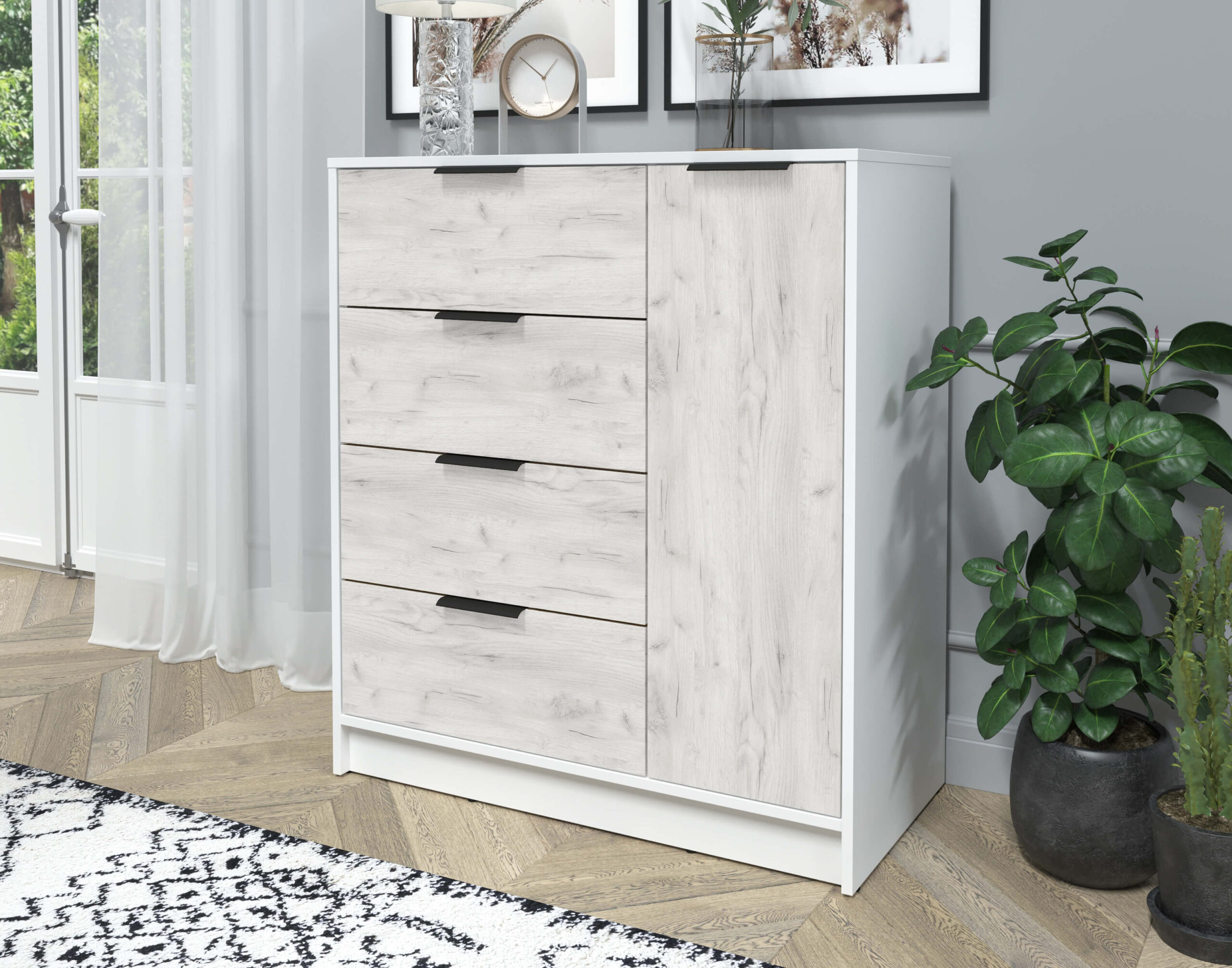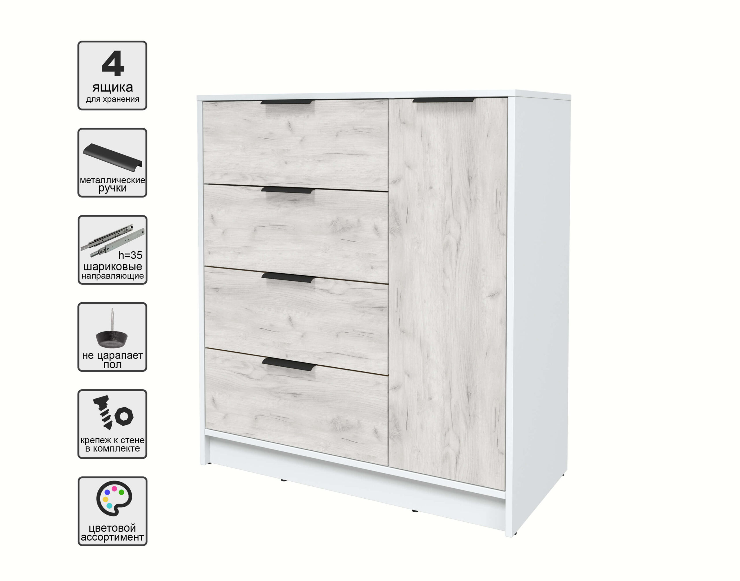 ТУМБА КТ-Т90 (БЕЛЫЙ ЛДСП/ ДУБ БЕЛЫЙ ЛДСП) Ш900 В1020 Г451 - Yuta.by