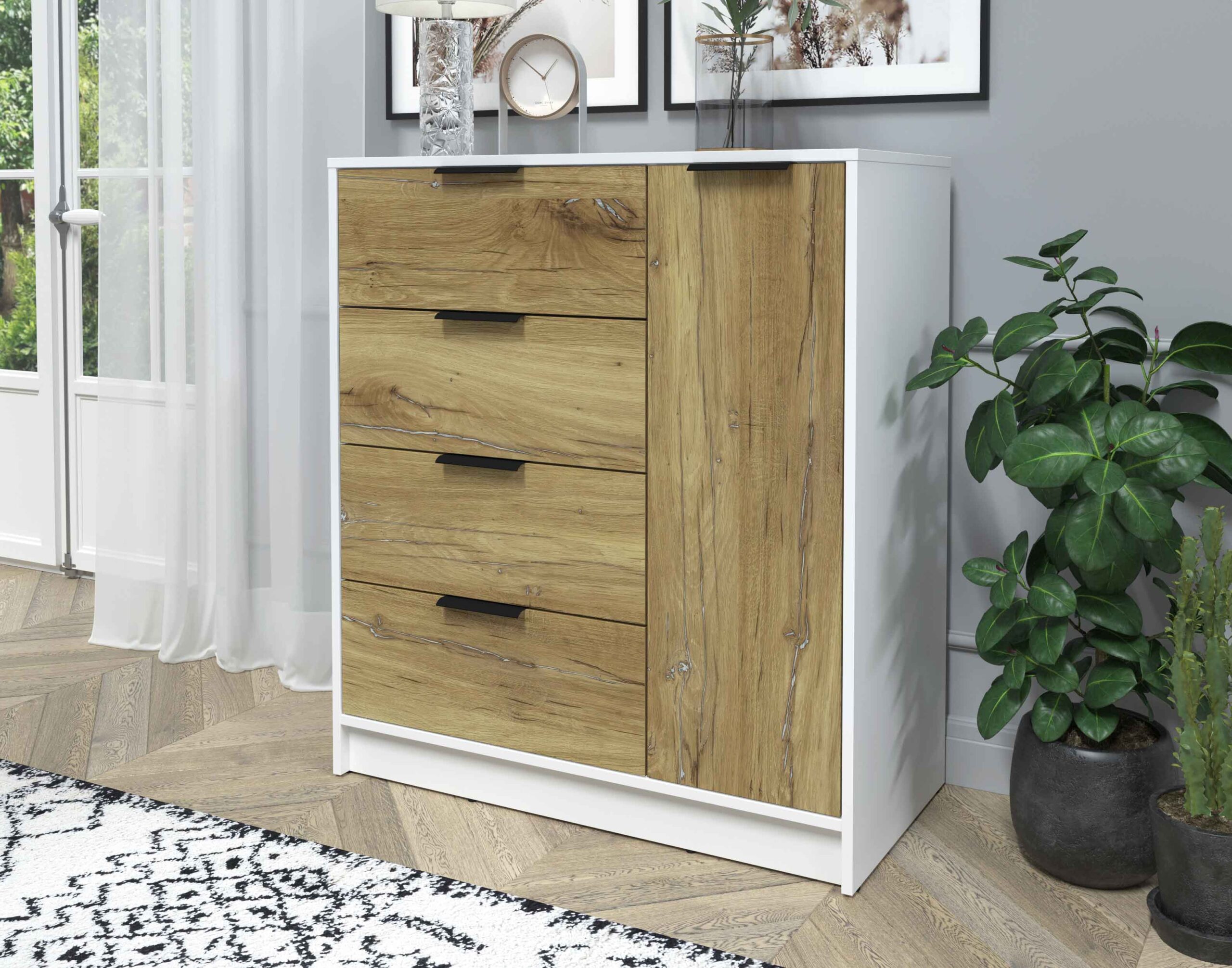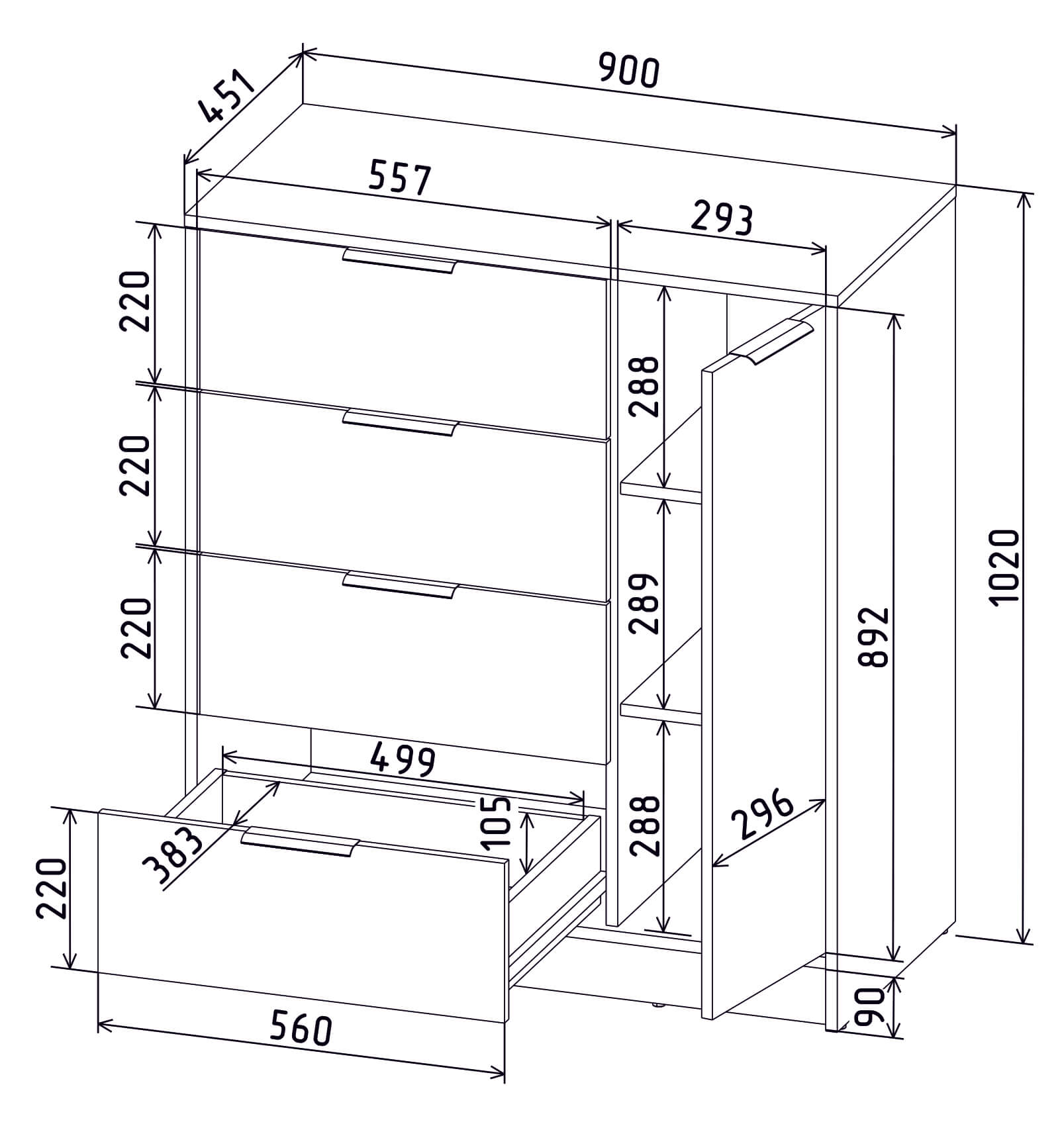 ТУМБА КТ-Т90 (БЕЛЫЙ ЛДСП/ ДУБ НОКС ЛДСП) Ш900 В1020 Г451
