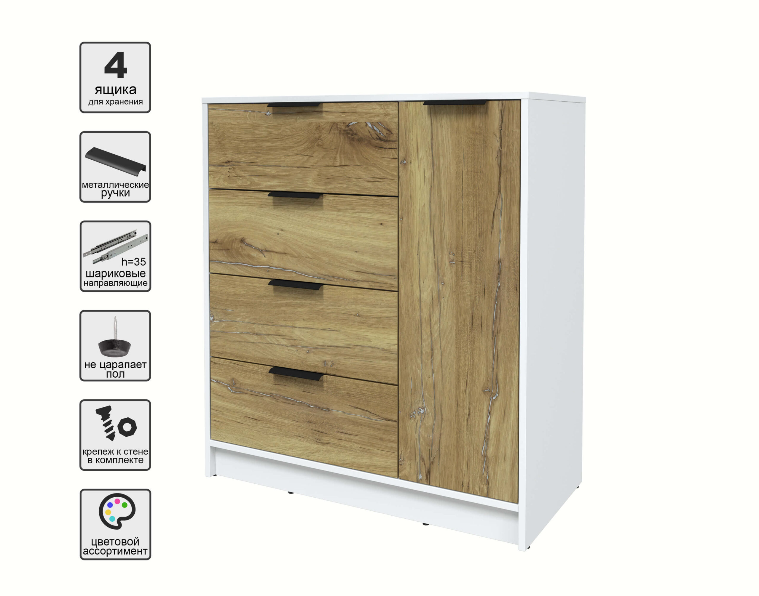 ТУМБА КТ-Т90 (БЕЛЫЙ ЛДСП/ ДУБ НОКС ЛДСП) Ш900 В1020 Г451 - Yuta.by