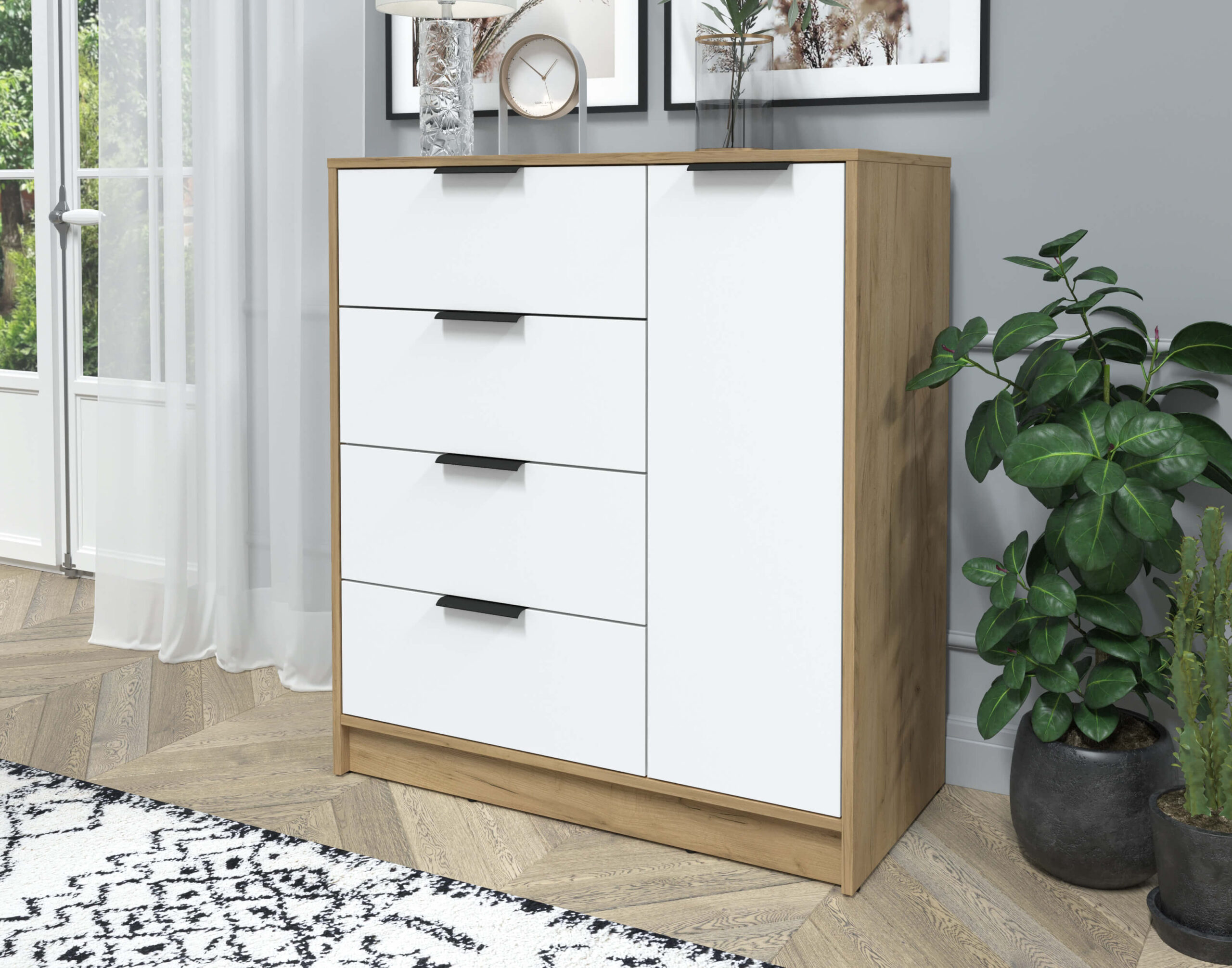 ТУМБА КТ-Т90 (ДУБ ЗОЛОТОЙ ЛДСП/ БЕЛЫЙ ПЛАТИНУМ ЛДСП) Ш900 В1020 Г451 - Yuta.by