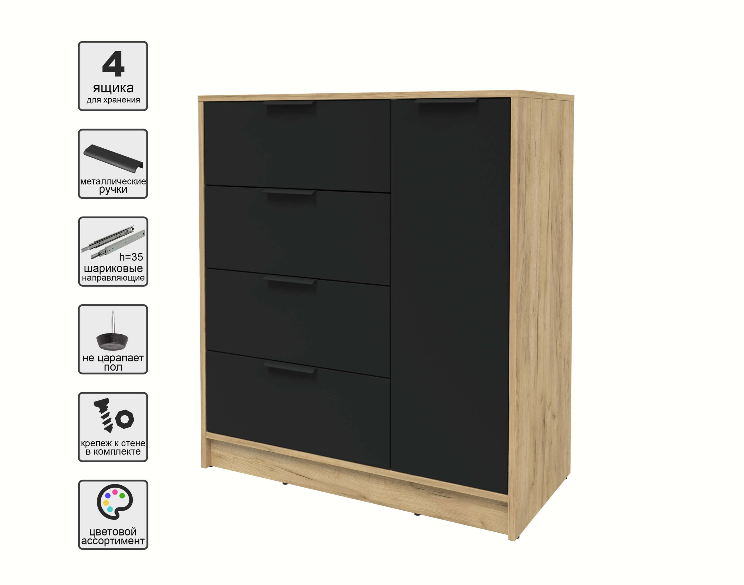ТУМБА КТ-Т90 (ДУБ ЗОЛОТОЙ ЛДСП/ ЧЕРНЫЙ ЛДСП) Ш900 В1020 Г451 - Yuta.by