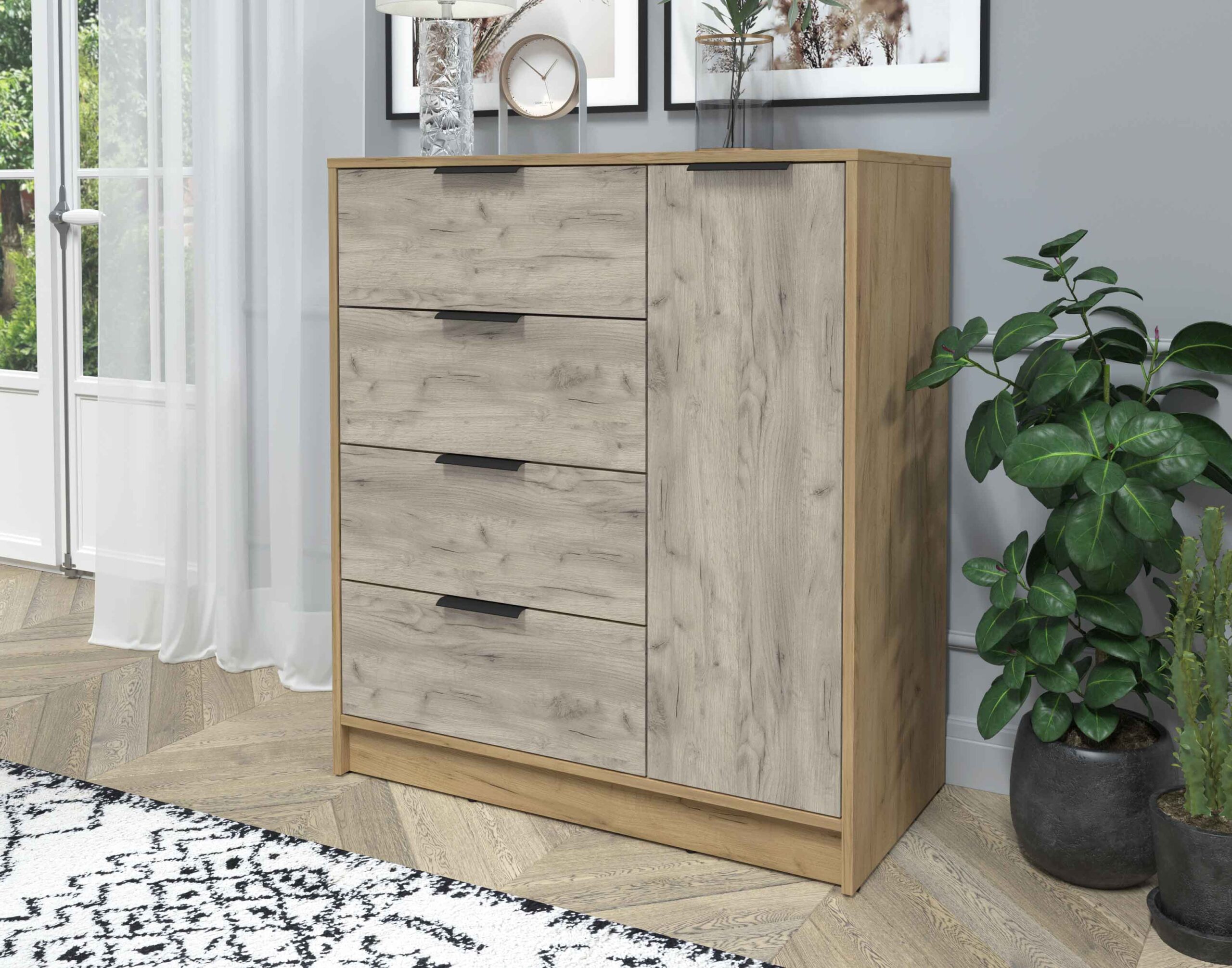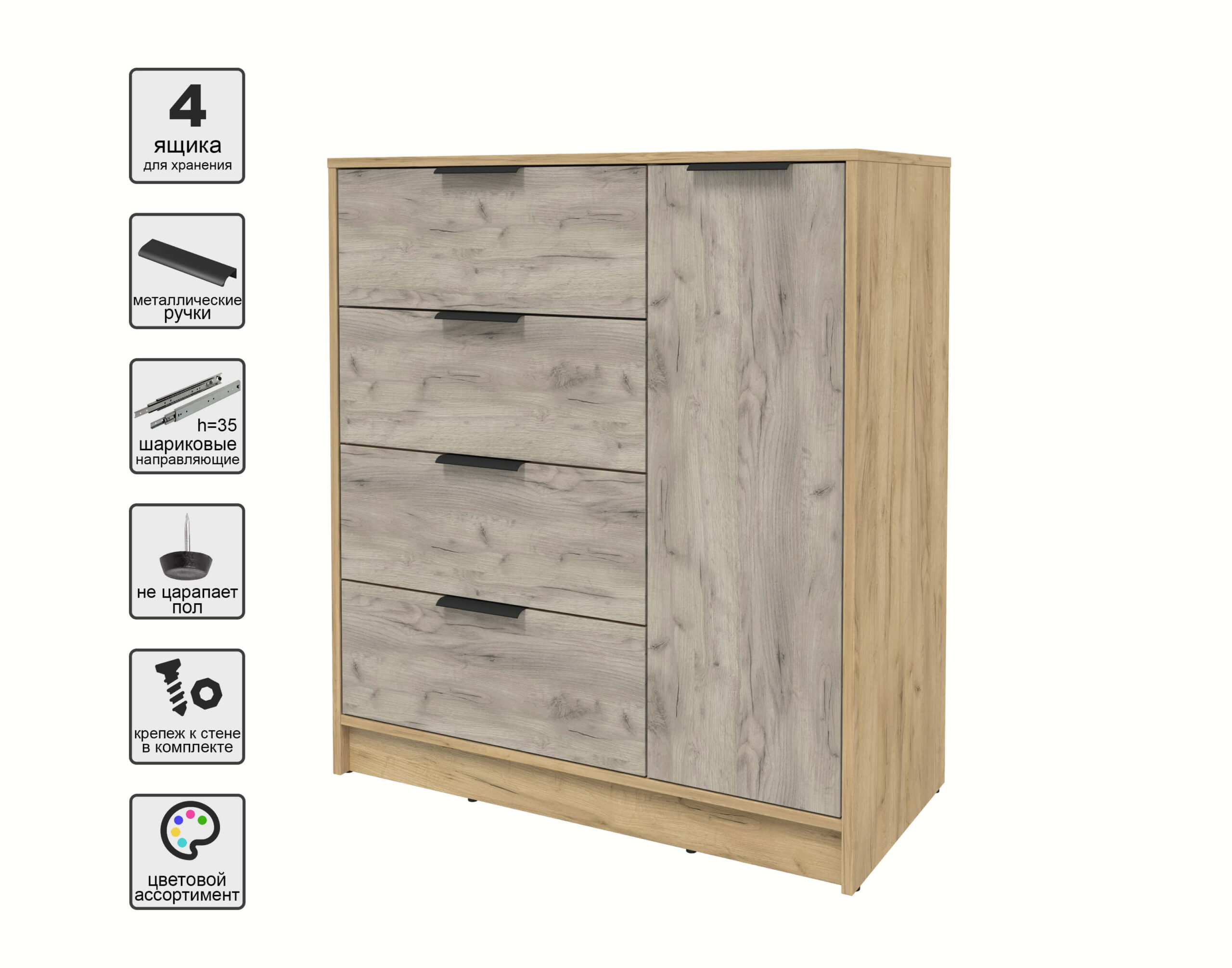 ТУМБА КТ-Т90 (ДУБ ЗОЛОТОЙ ЛДСП/ ДУБ СЕРЫЙ ЛДСП) Ш900 В1020 Г451 - Yuta.by