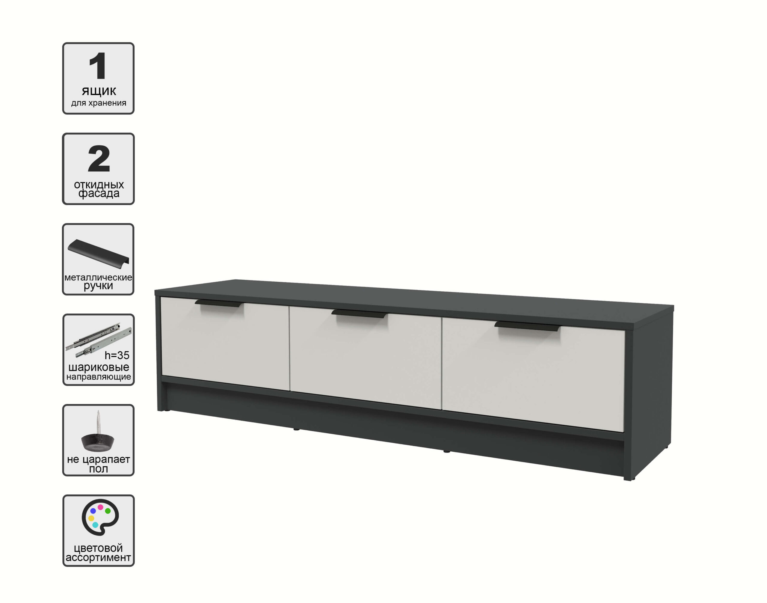 ТУМБА КТ-ТВ3-35 (АНТРАЦИТ ЛДСП/ ПЕРСИДСКИЙ ЖЕМЧУГ ЛДСП) Ш1360 В348 Г355 - Yuta.by