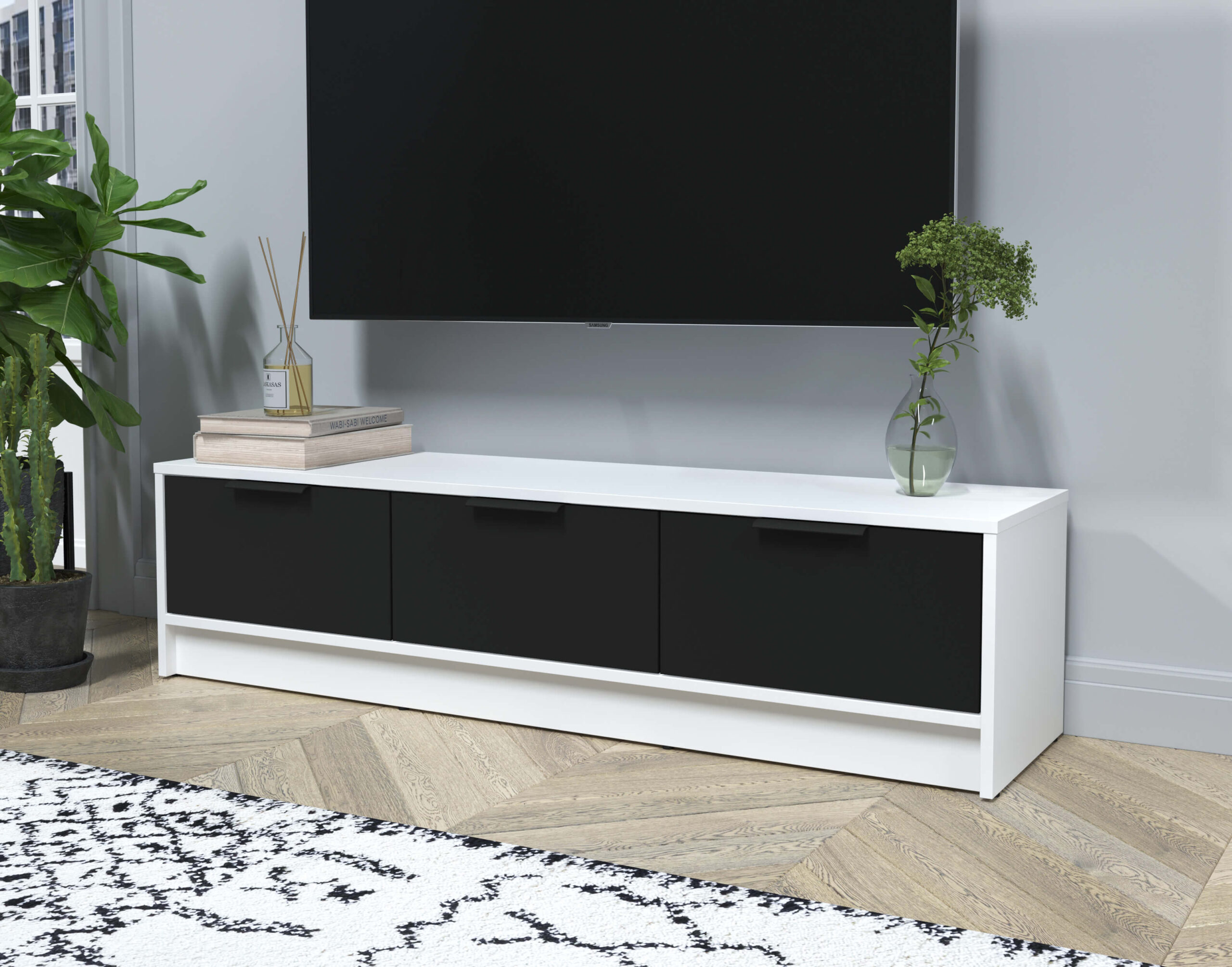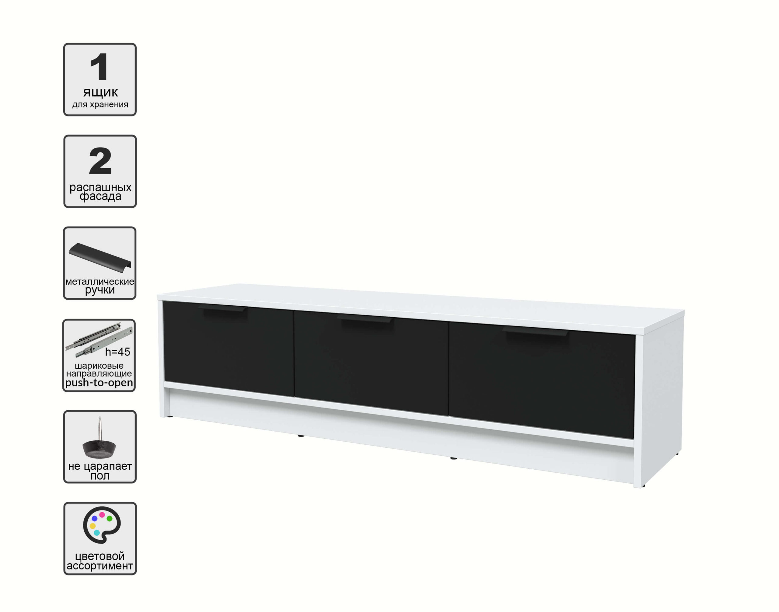ТУМБА КТ-ТВ3-35 (БЕЛЫЙ ЛДСП/ ЧЕРНЫЙ ЛДСП) Ш1360 В348 Г355 - Yuta.by