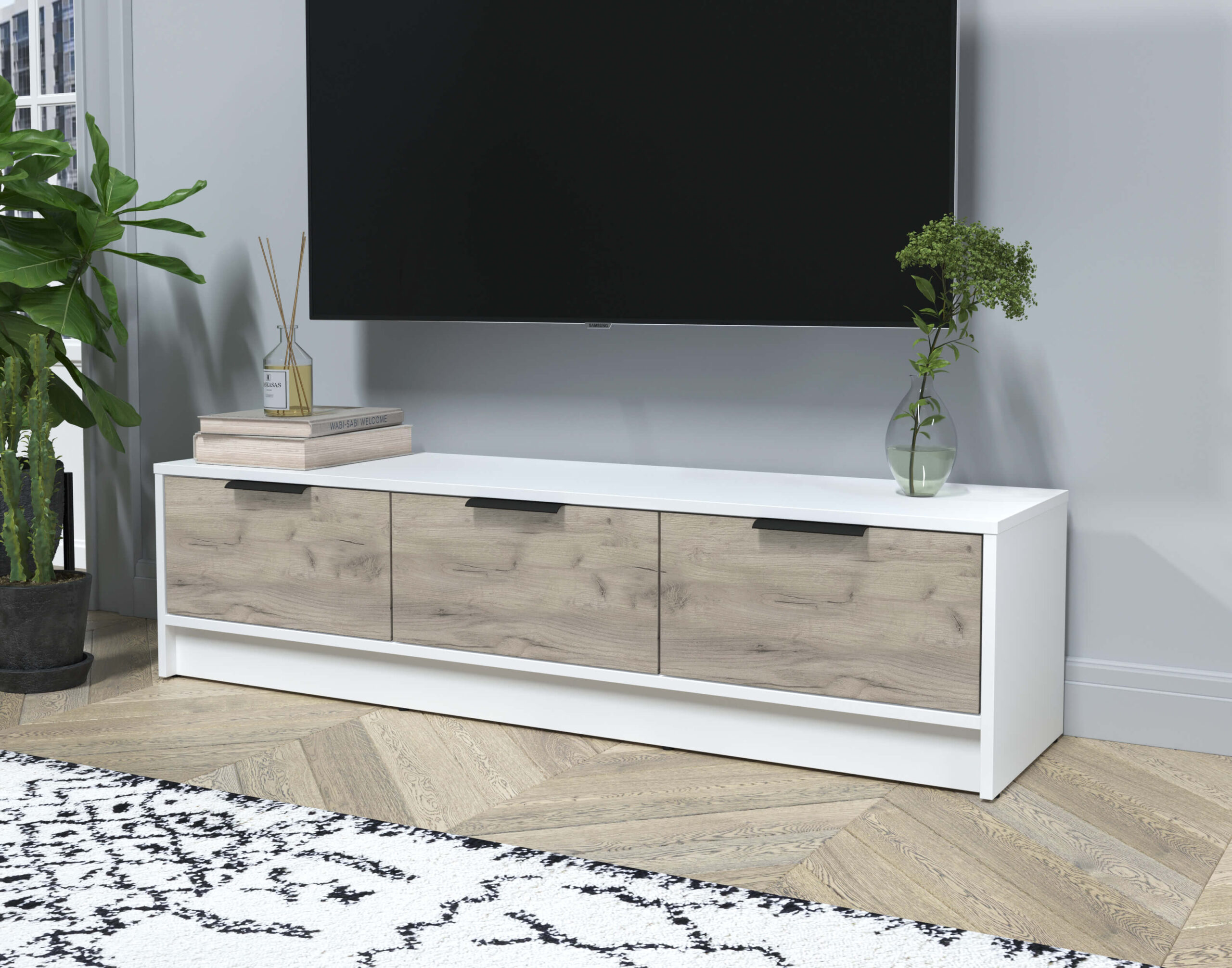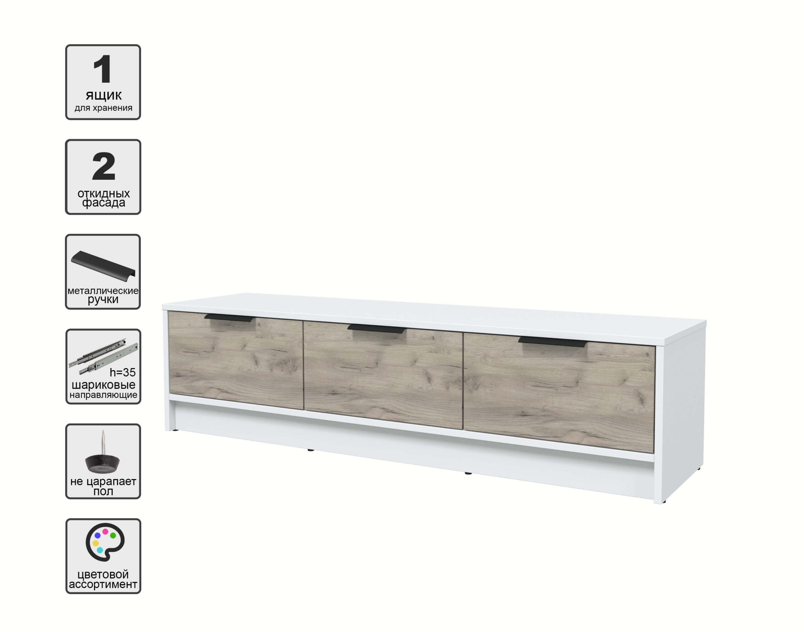 ТУМБА КТ-ТВ3-35 (БЕЛЫЙ ЛДСП/ ДУБ СЕРЫЙ ЛДСП) Ш1360 В348 Г355 - Yuta.by