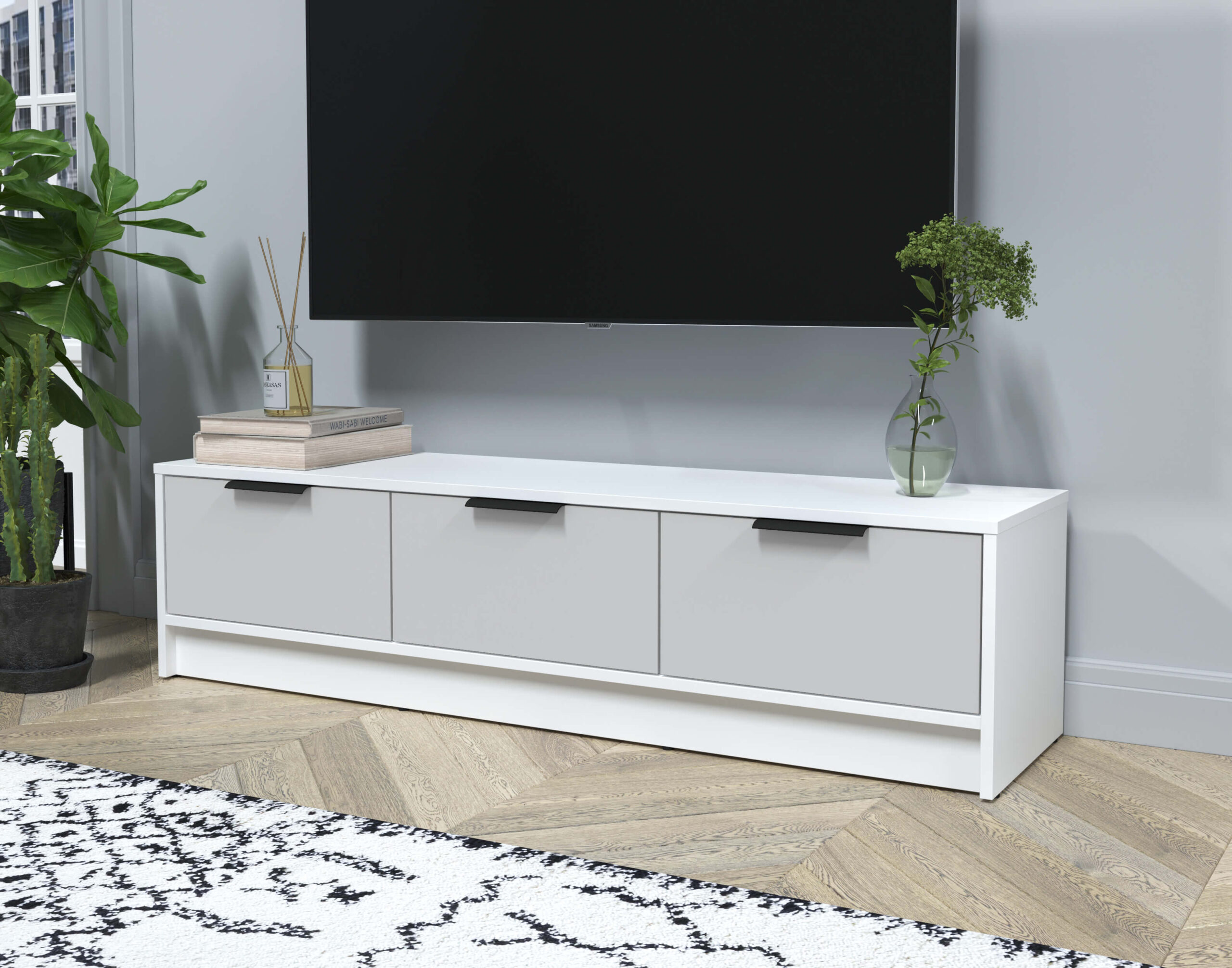 ТУМБА КТ-ТВ3-35 (БЕЛЫЙ ЛДСП/ СЕРЫЙ ЛДСП) Ш1360 В348 Г355 - Yuta.by
