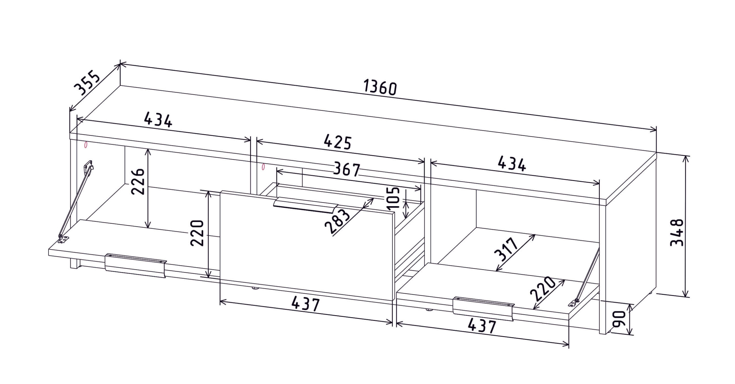 ТУМБА КТ-ТВ3-35 (ДУБ ЗОЛОТОЙ ЛДСП/ ДУБ НОКС ЛДСП) Ш1360 В348 Г355 - Yuta.by