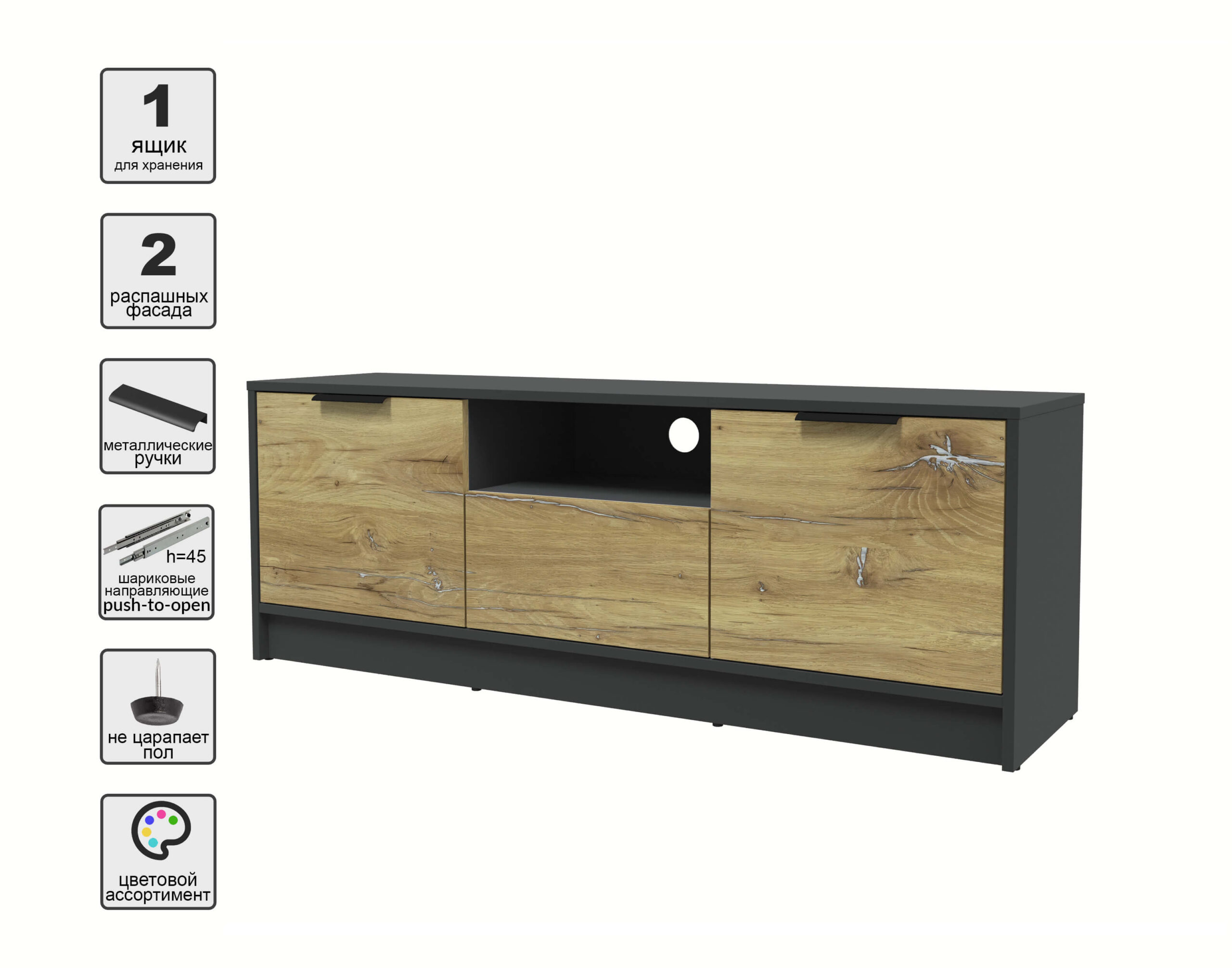 ТУМБА КТ-ТВ3-50 (АНТРАЦИТ ЛДСП/ ДУБ НОКС ЛДСП) Ш1360 В495 Г355 - Yuta.by