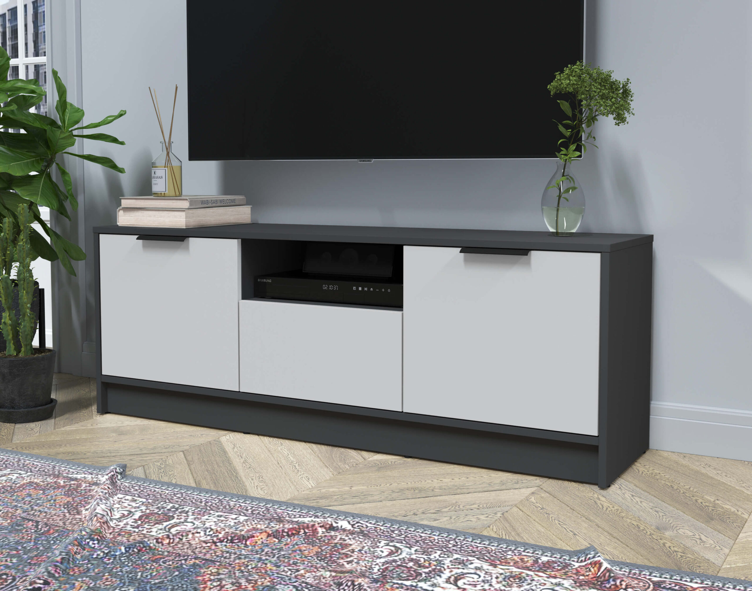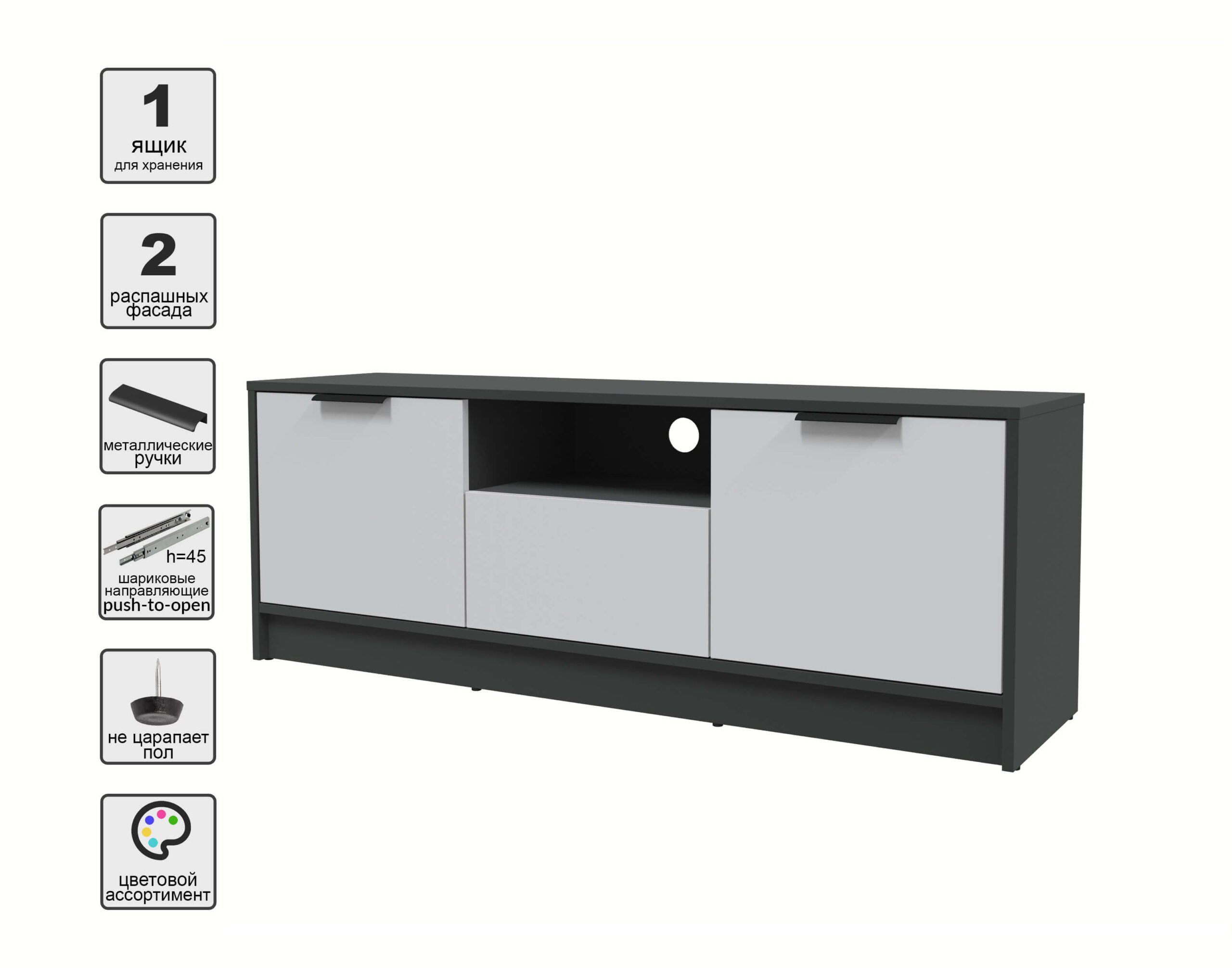 ТУМБА КТ-ТВ3-50 (АНТРАЦИТ ЛДСП/ СЕРЫЙ ЛДСП) Ш1360 В495 Г355 - Yuta.by