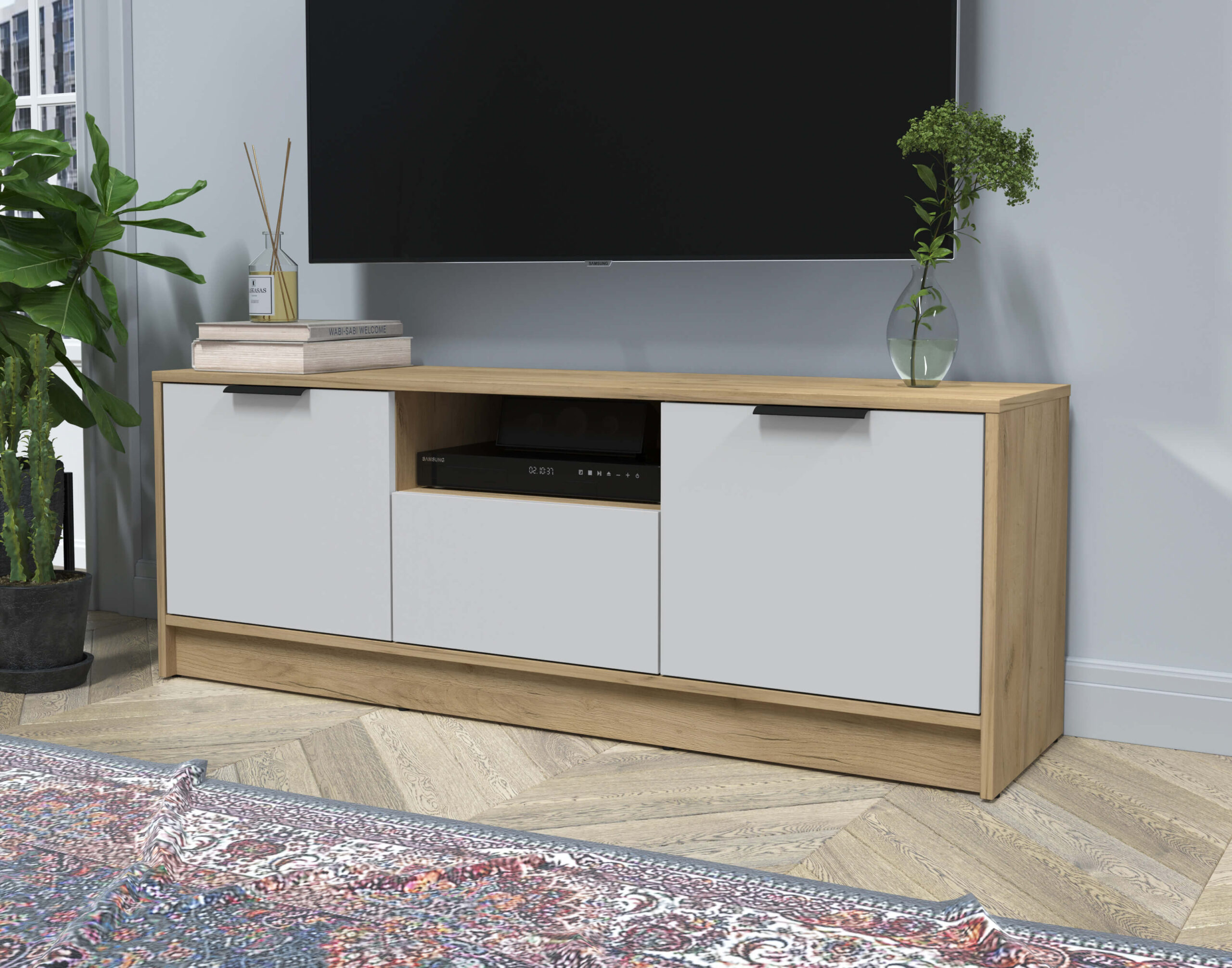ТУМБА КТ-ТВ3-50 (ДУБ ЗОЛОТОЙ ЛДСП/ СЕРЫЙ ЛДСП) Ш1360 В495 Г355 - Yuta.by