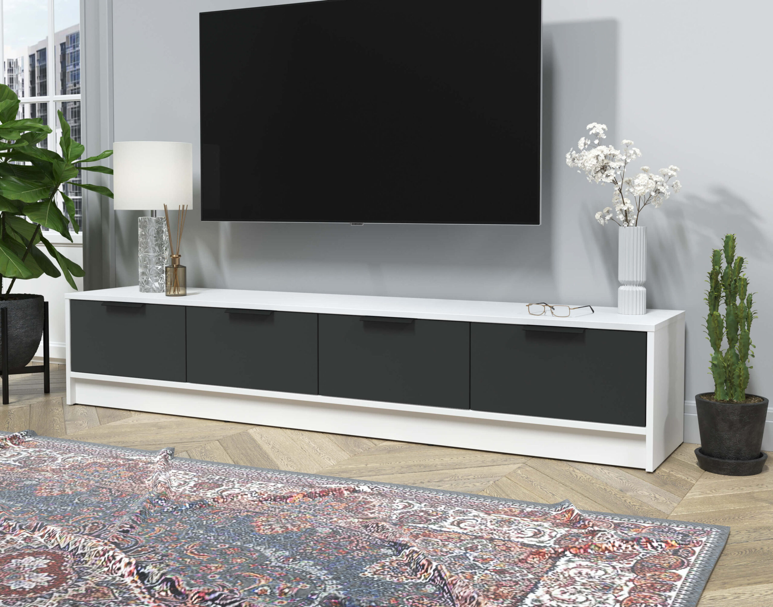 ТУМБА КТ-ТВ4-35 (БЕЛЫЙ ЛДСП/ АНТРАЦИТ ЛДСП) Ш1800 В348 Г355 - Yuta.by
