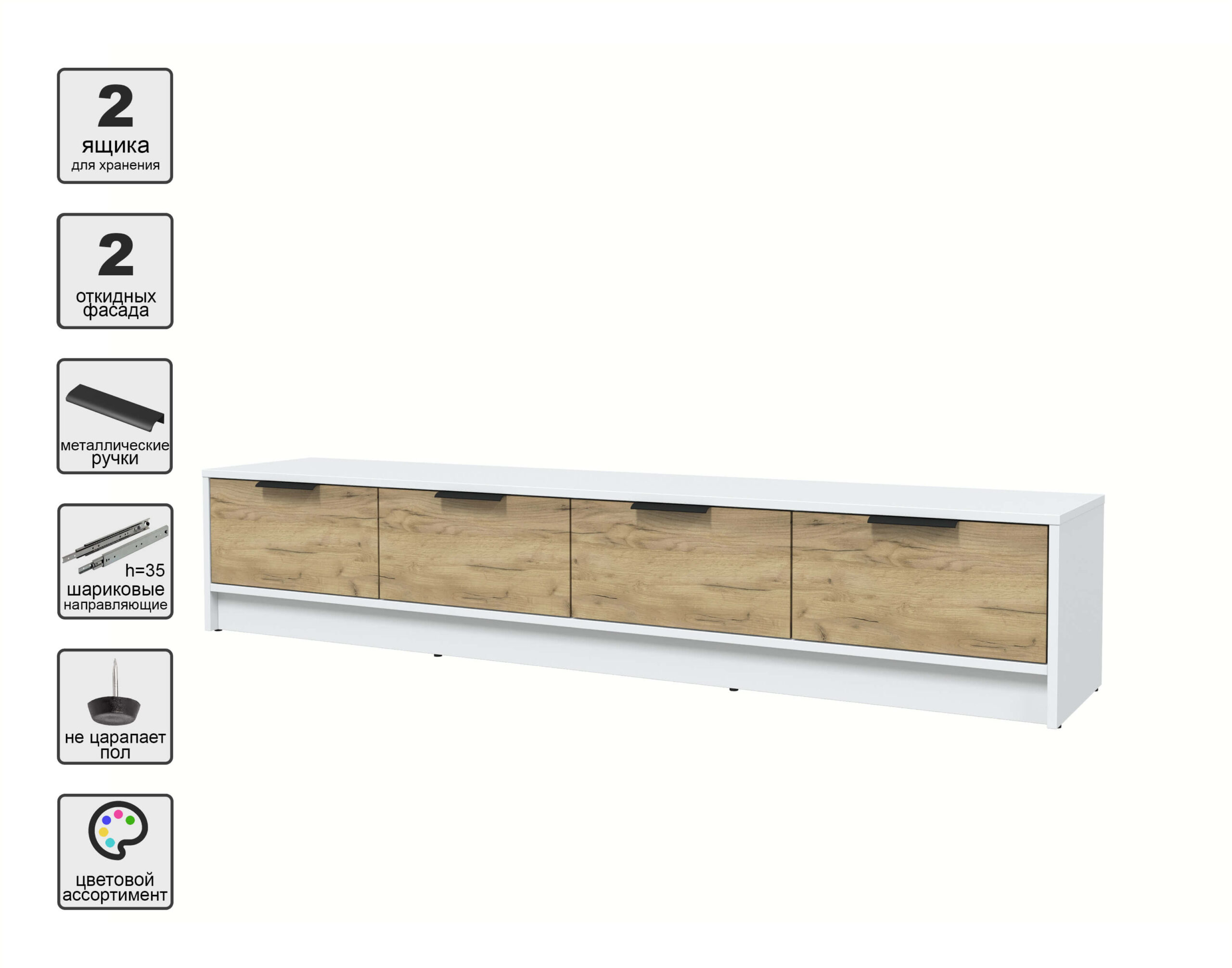 ТУМБА КТ-ТВ4-35 (БЕЛЫЙ ЛДСП/ ДУБ ЗОЛОТОЙ ЛДСП) Ш1800 В348 Г355 - Yuta.by
