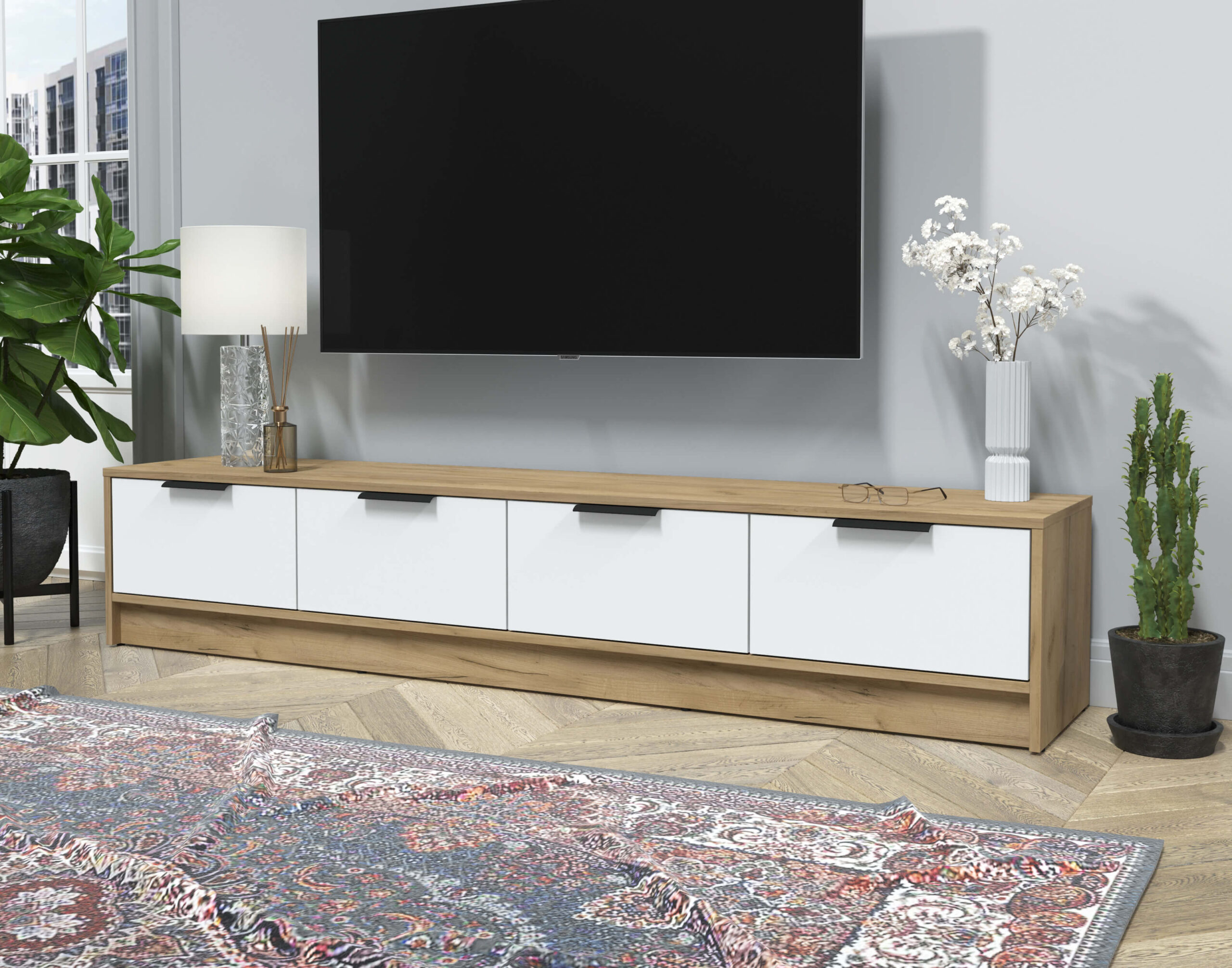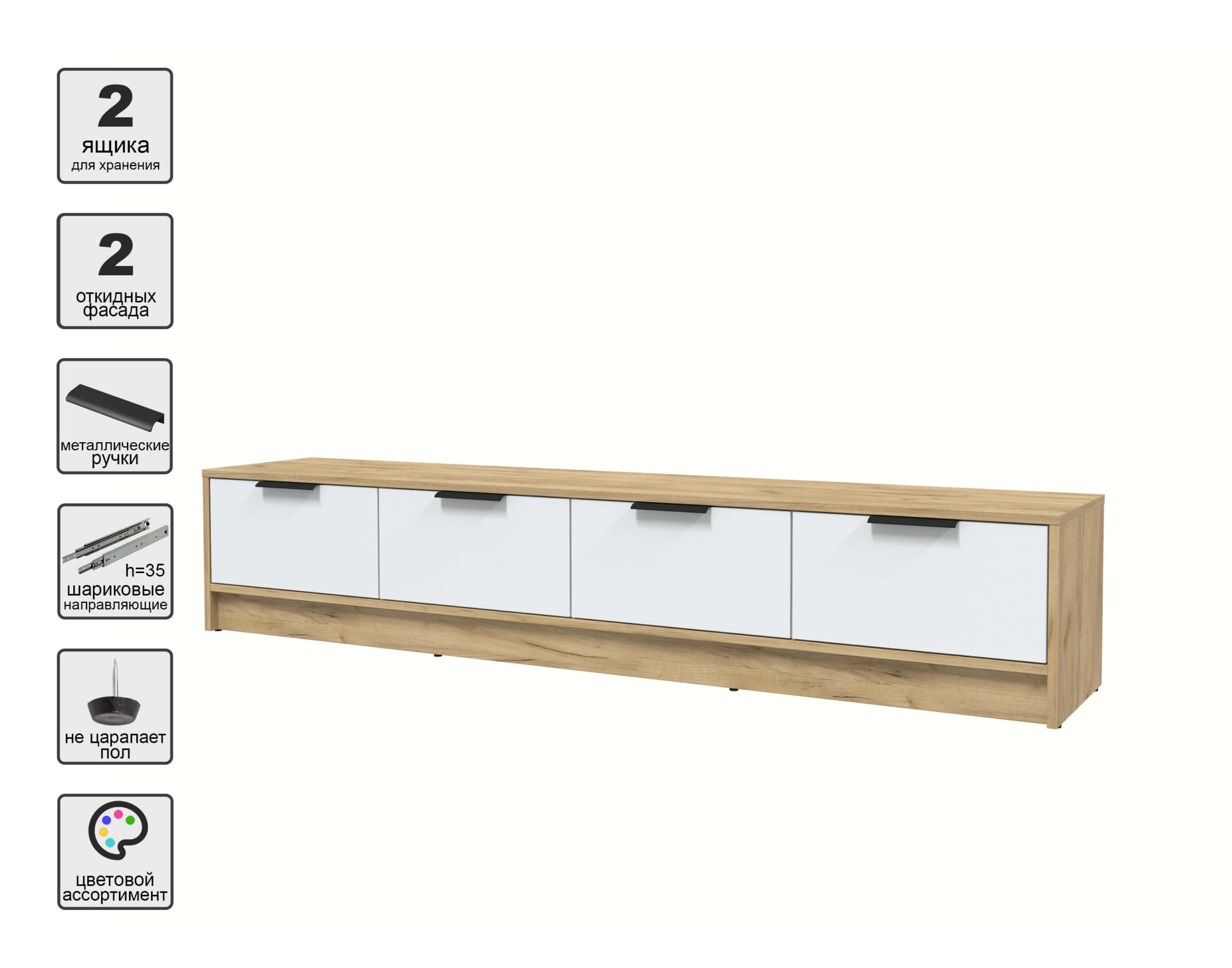 ТУМБА КТ-ТВ4-35 (ДУБ ЗОЛОТОЙ ЛДСП/ БЕЛЫЙ ПЛАТИНУМ ЛДСП) Ш1800 В348 Г355 - Yuta.by