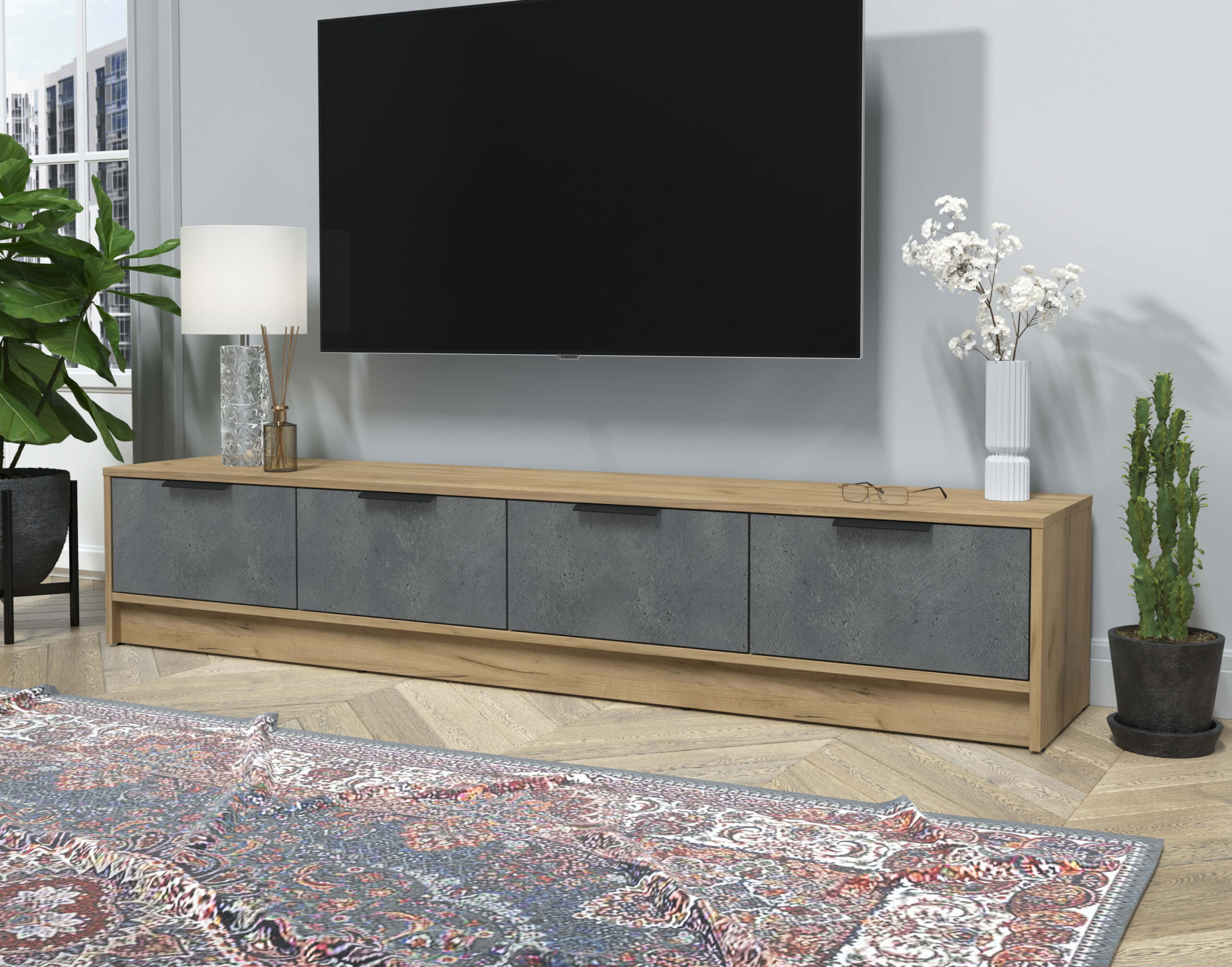 ТУМБА КТ-ТВ4-35 (ДУБ ЗОЛОТОЙ ЛДСП/ БЕТОН ПОРТЛЕНД ЛДСП) Ш1800 В348 Г355