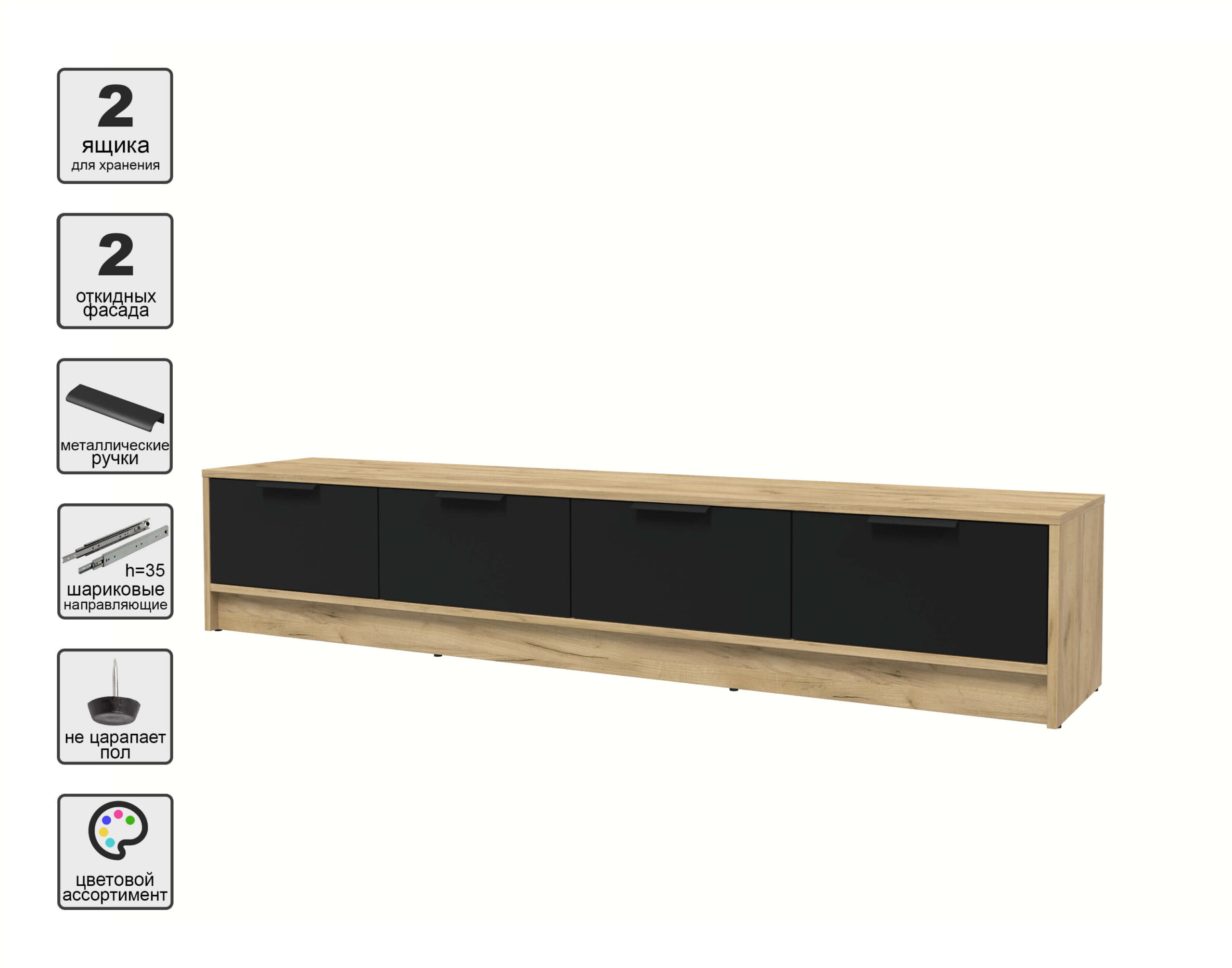 ТУМБА КТ-ТВ4-35 (ДУБ ЗОЛОТОЙ ЛДСП/ ЧЕРНЫЙ ЛДСП) Ш1800 В348 Г355 - Yuta.by