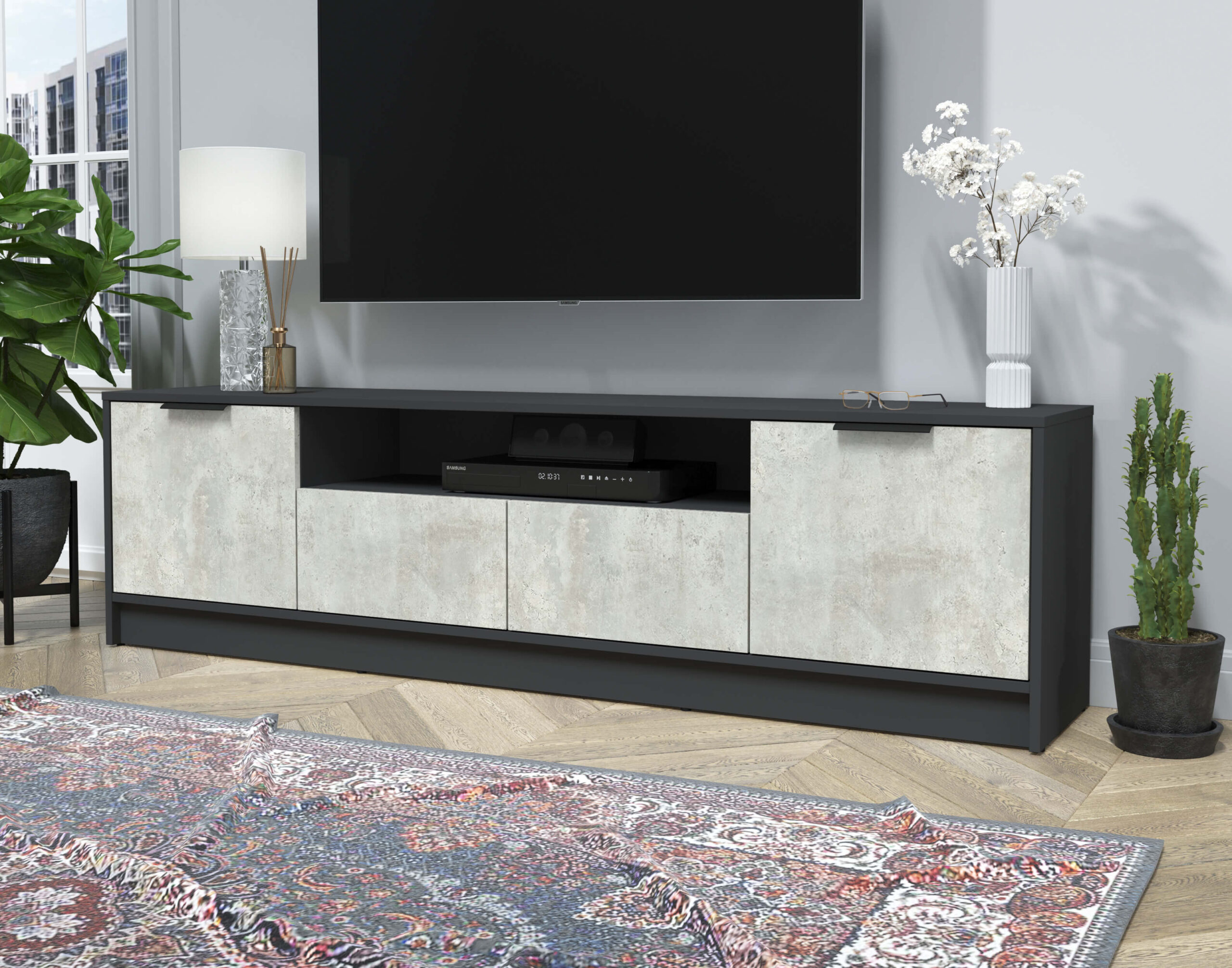 ТУМБА КТ-ТВ4-50 (АНТРАЦИТ ЛДСП/ БЕТОН ЛАЙТ ЛДСП) Ш1800 В495 Г355
