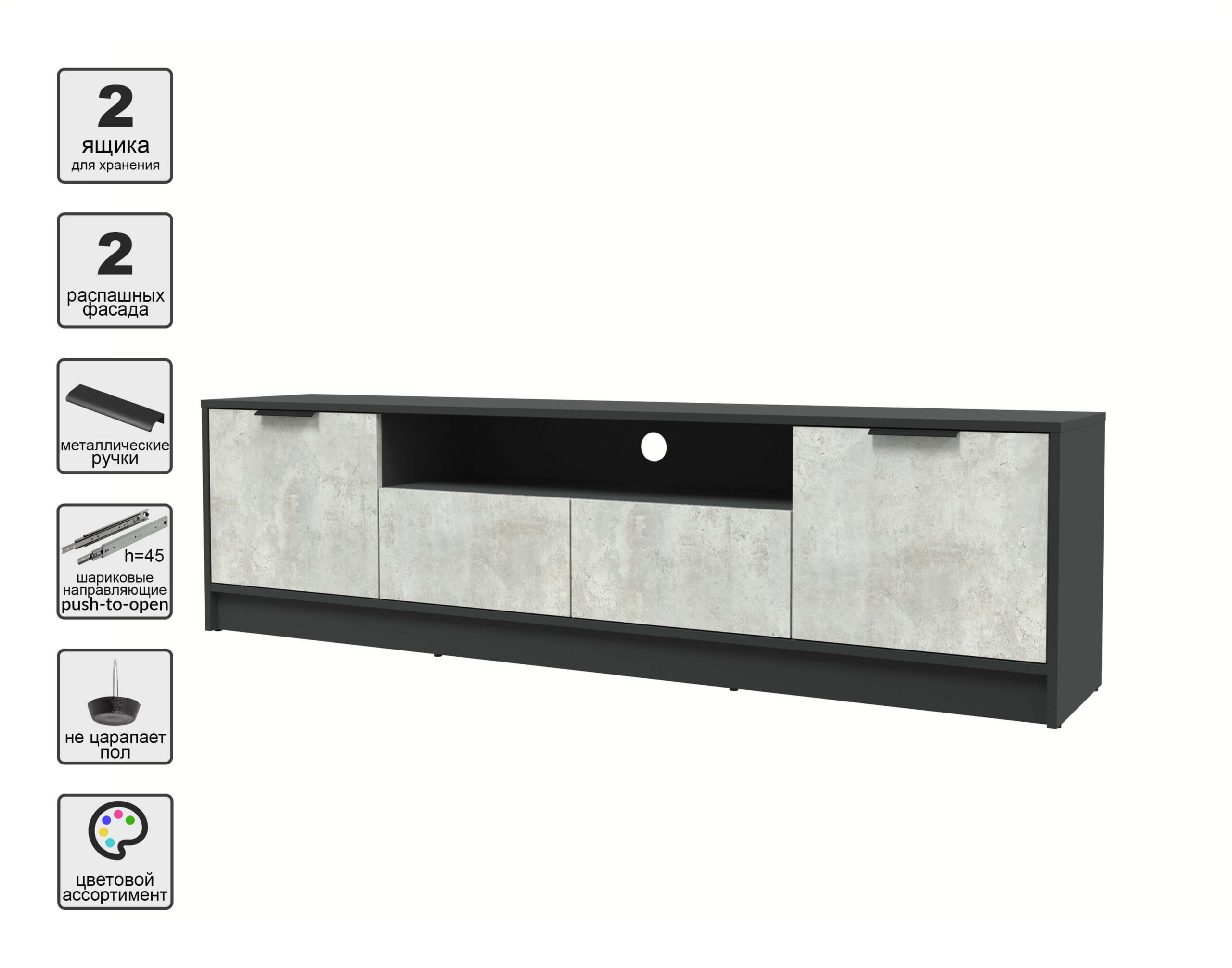 ТУМБА КТ-ТВ4-50 (АНТРАЦИТ ЛДСП/ БЕТОН ЛАЙТ ЛДСП) Ш1800 В495 Г355 - Yuta.by