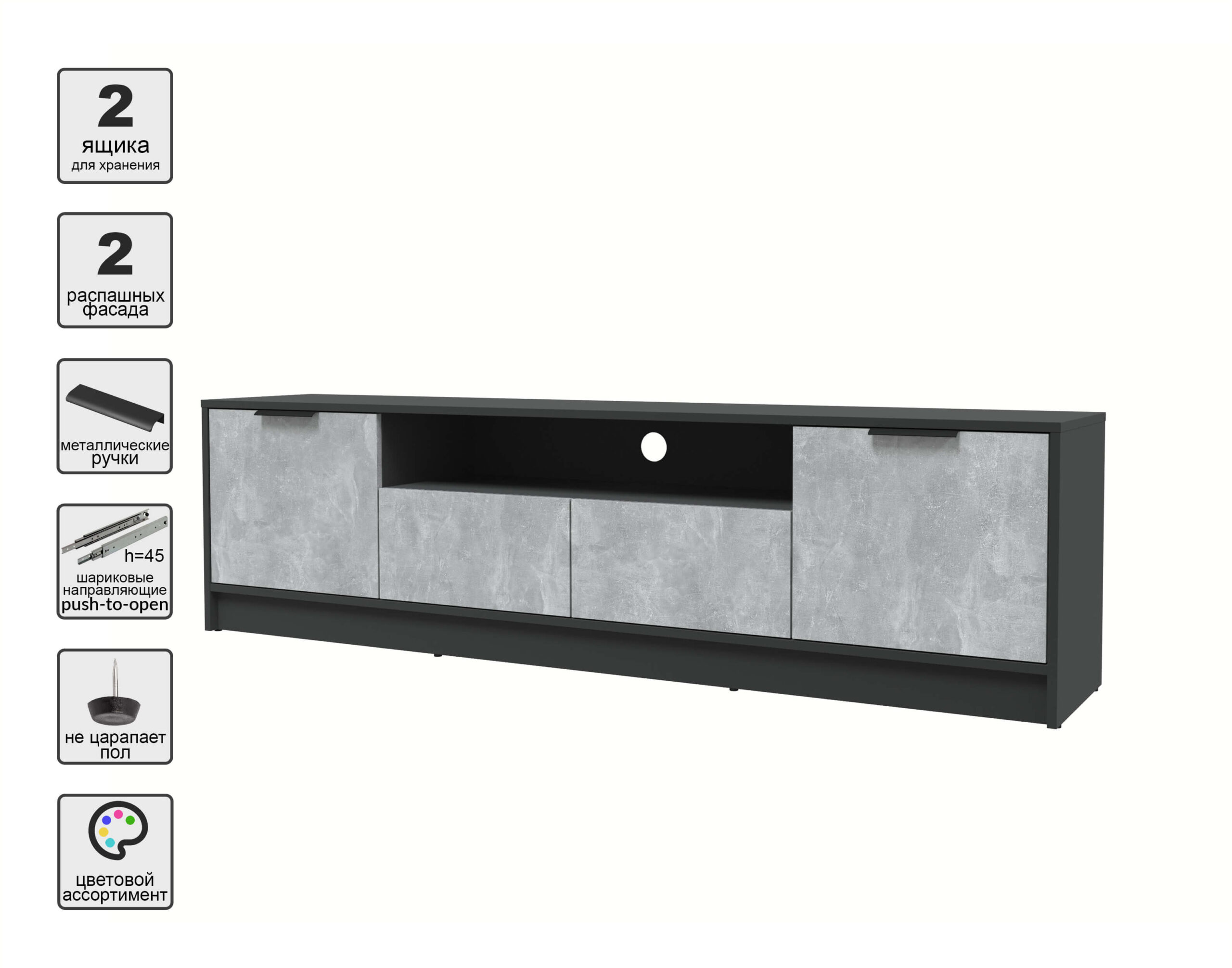 ТУМБА КТ-ТВ4-50 (АНТРАЦИТ ЛДСП/ БЕТОН ЛДСП) Ш1800 В495 Г355 - Yuta.by