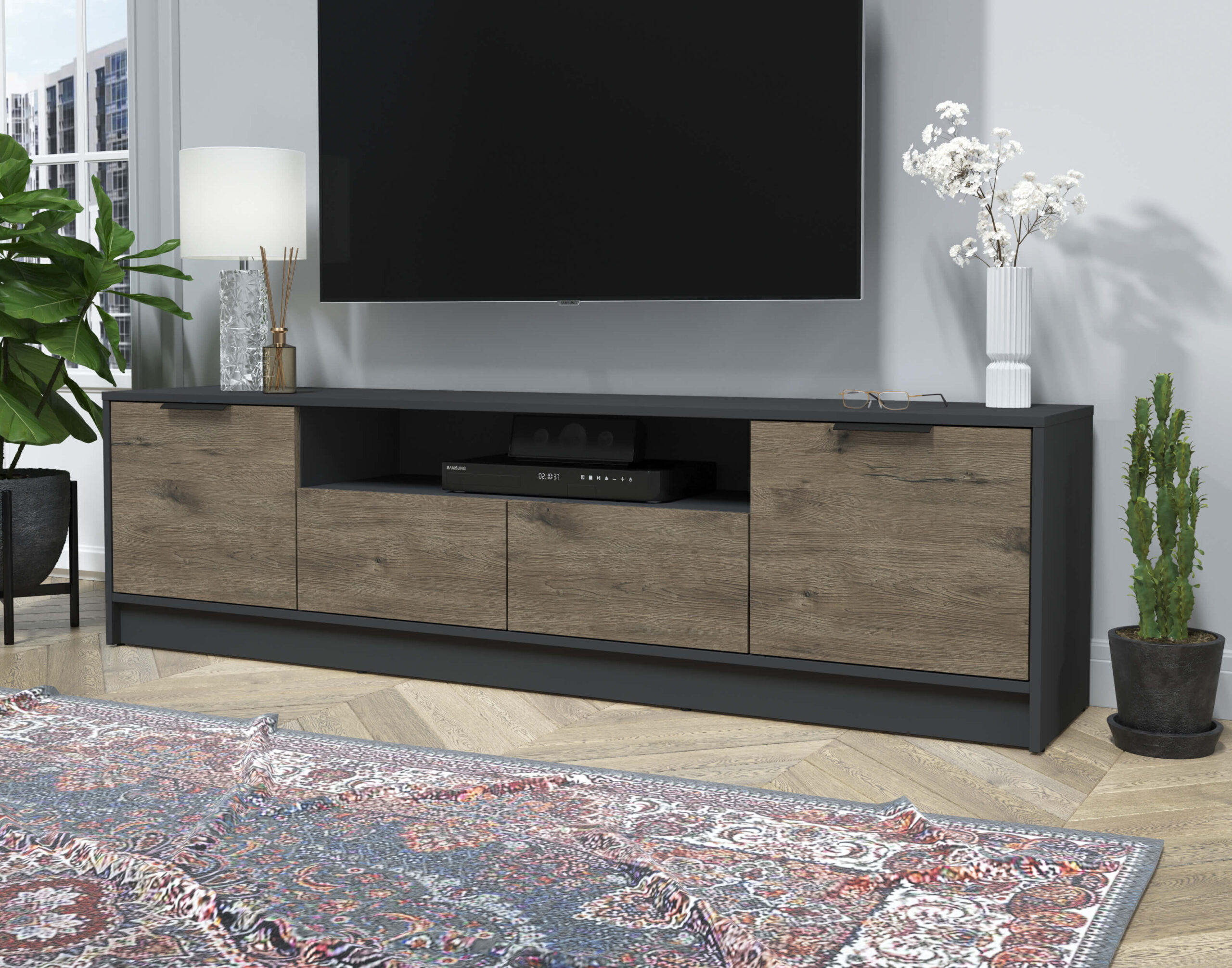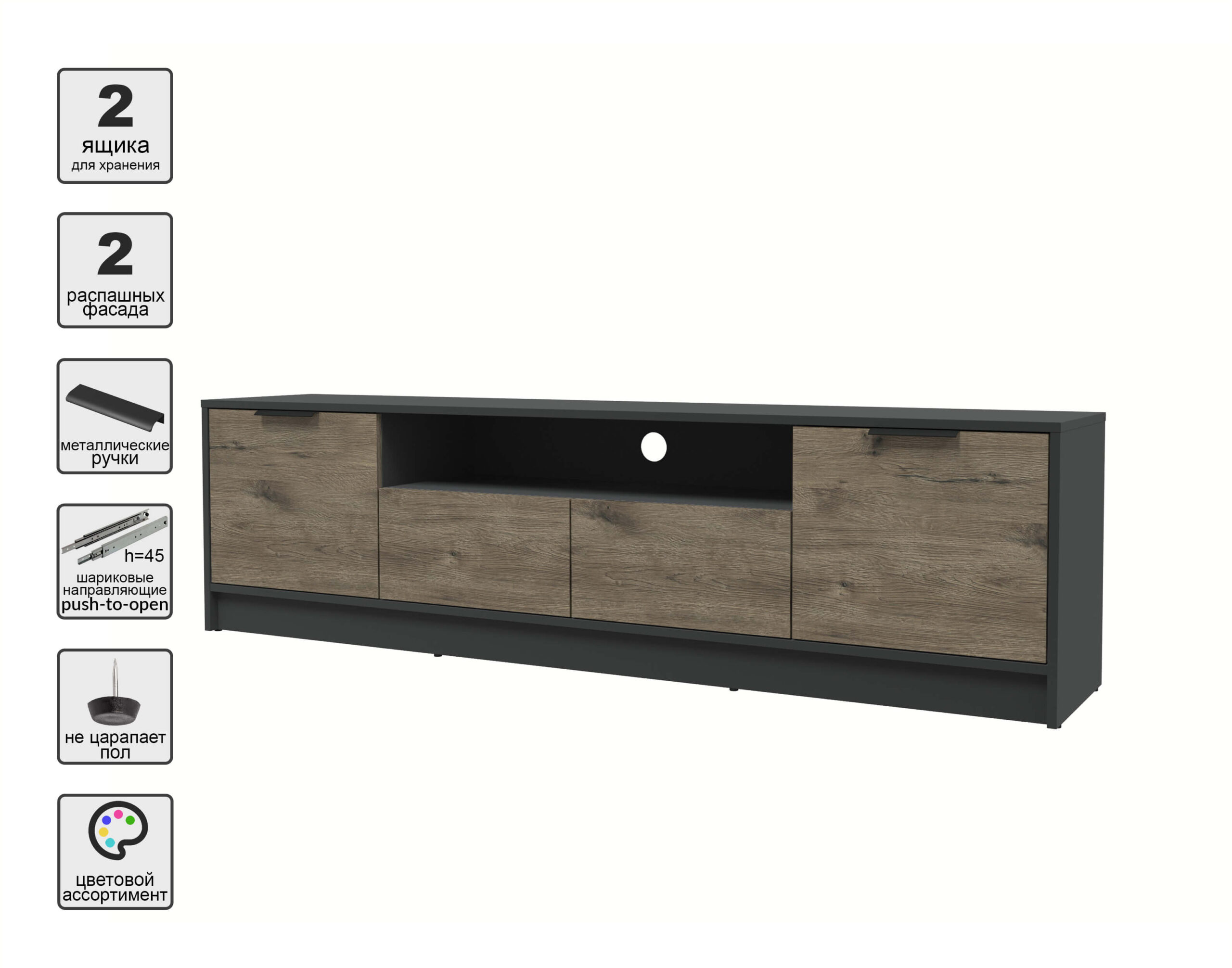 ТУМБА КТ-ТВ4-50 (АНТРАЦИТ ЛДСП/ ДУБ ВЕЛЛИНГТОН ЛДСП) Ш1800 В495 Г355 - Yuta.by