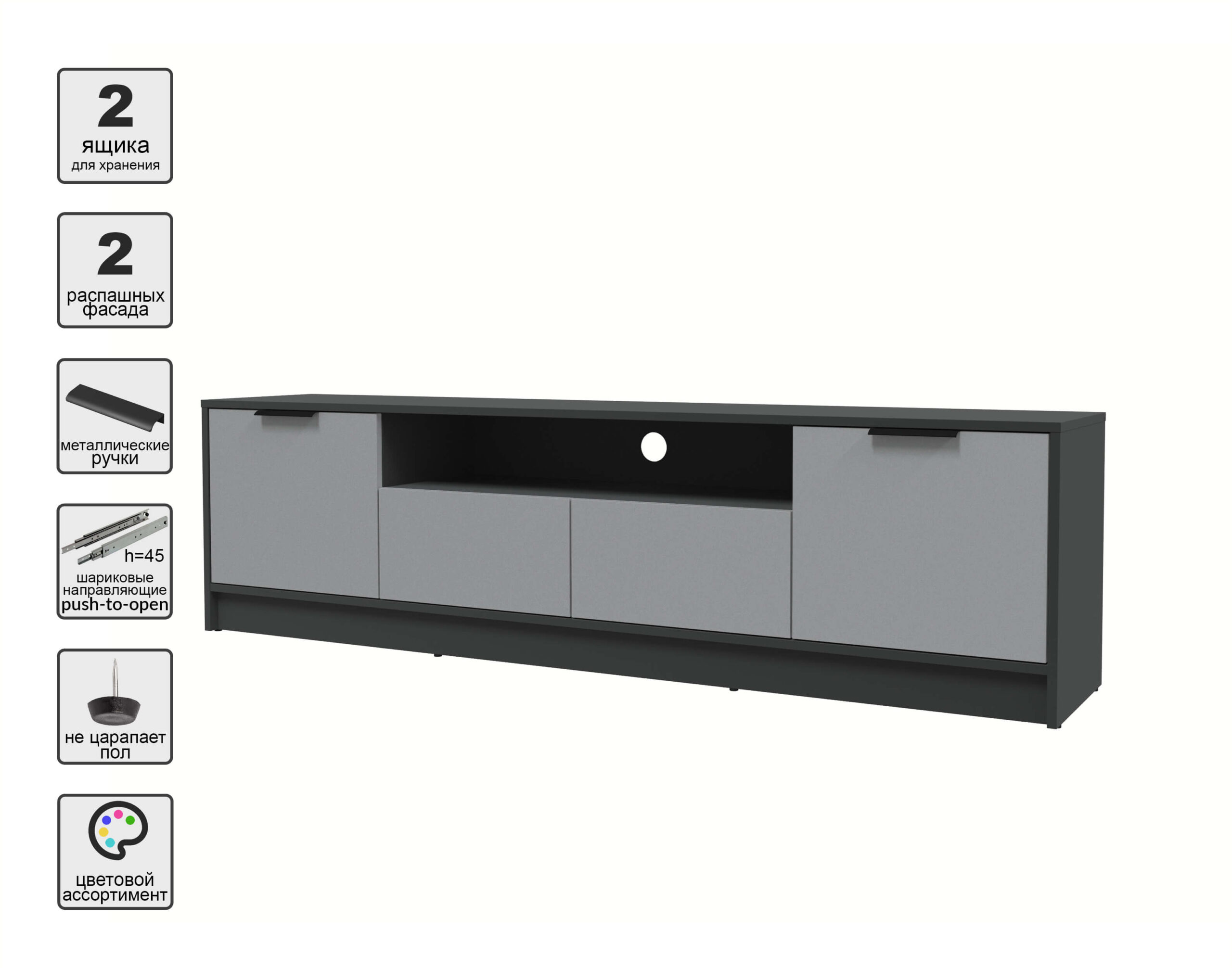 ТУМБА КТ-ТВ4-50 (АНТРАЦИТ ЛДСП/ СЕРЕБРО ЛДСП) Ш1800 В495 Г355 - Yuta.by