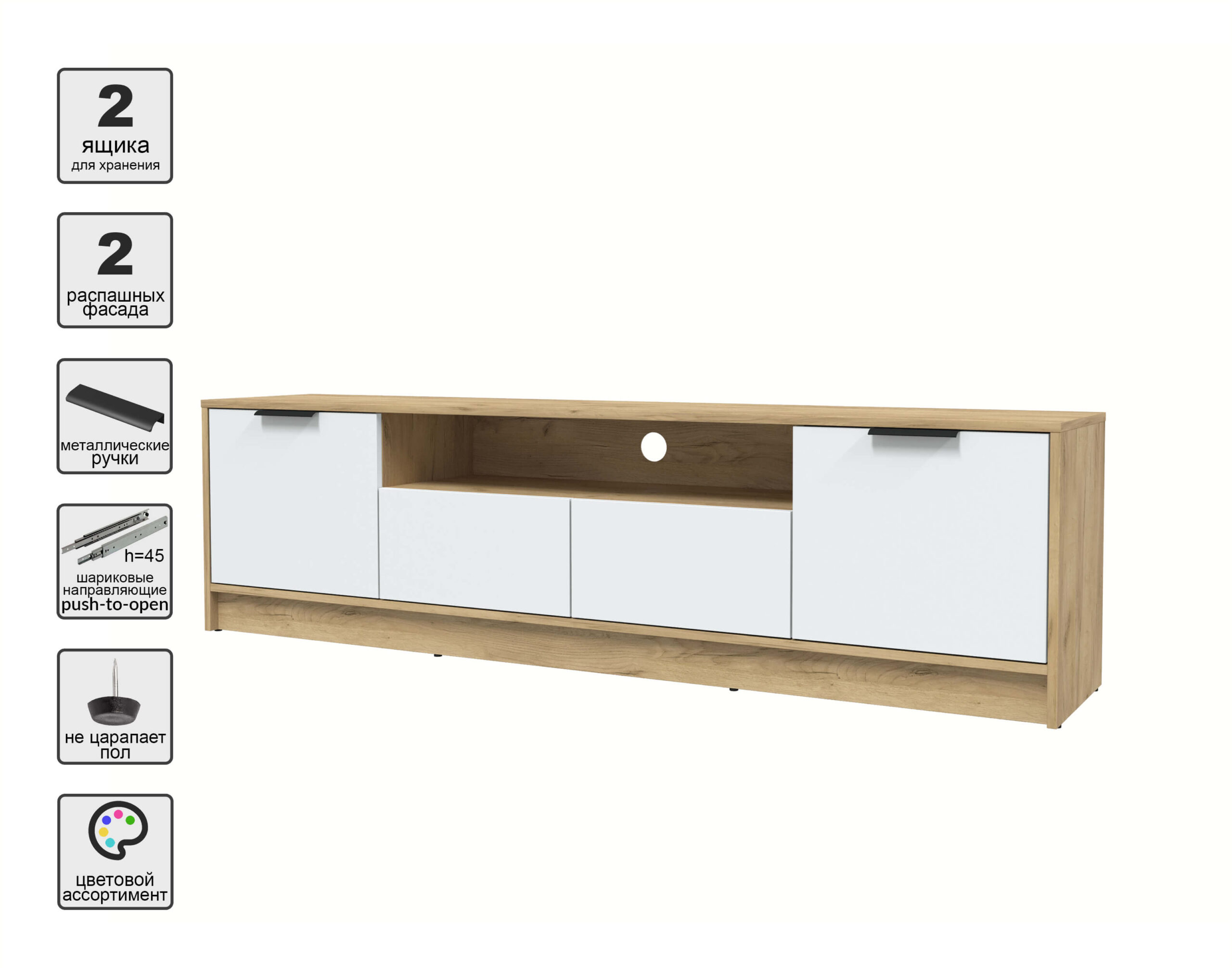 ТУМБА КТ-ТВ4-50 (ДУБ ЗОЛОТОЙ ЛДСП/ БЕЛЫЙ ПЛАТИНУМ ЛДСП) Ш1800 В495 Г355 - Yuta.by