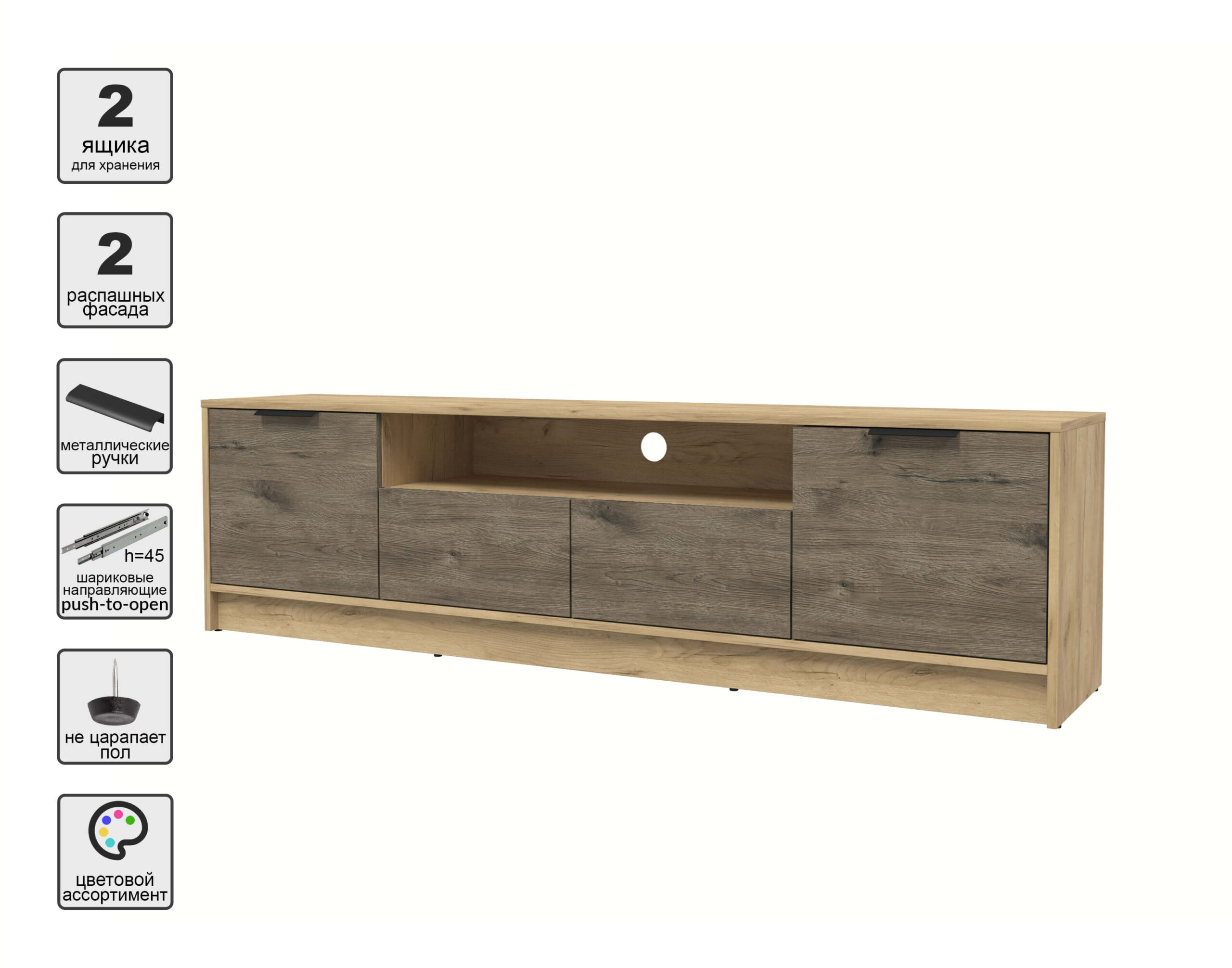 ТУМБА КТ-ТВ4-50 (ДУБ ЗОЛОТОЙ ЛДСП/ ДУБ ВЕЛЛИНГТОН ЛДСП) Ш1800 В495 Г355 - Yuta.by