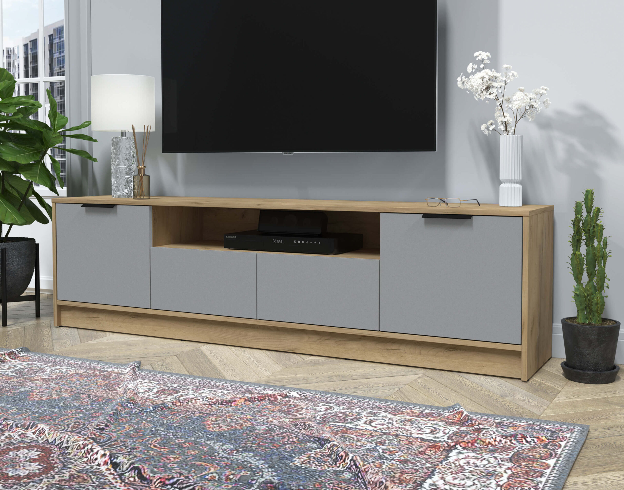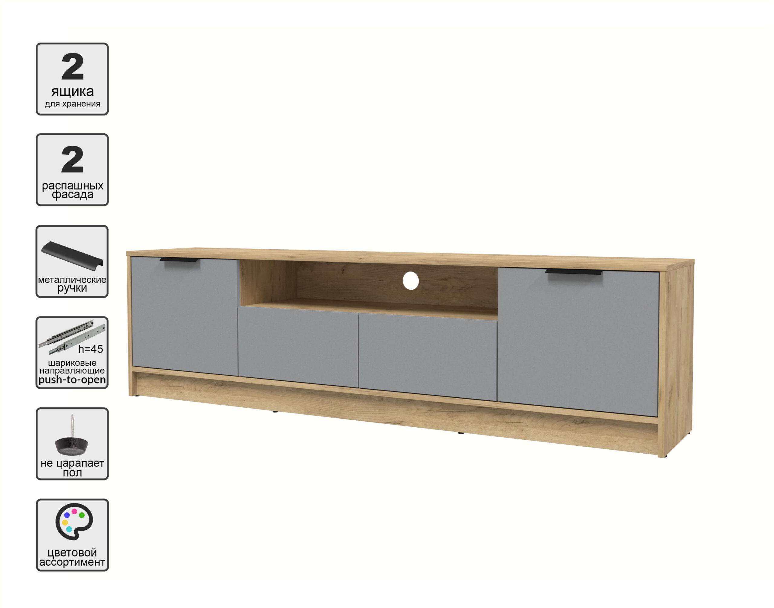 ТУМБА КТ-ТВ4-50 (ДУБ ЗОЛОТОЙ ЛДСП/ СЕРЕБРО ЛДСП) Ш1800 В495 Г355 - Yuta.by