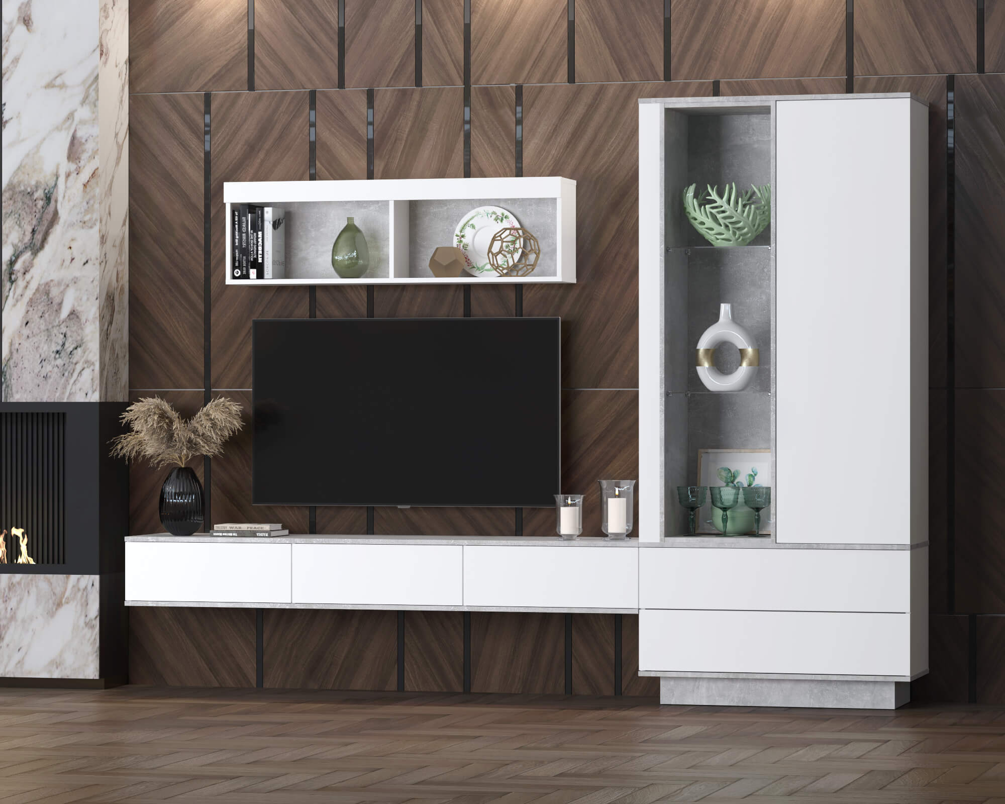 Цвет: Белый платинум / Бетон или Дуб Нокс/ Черный;