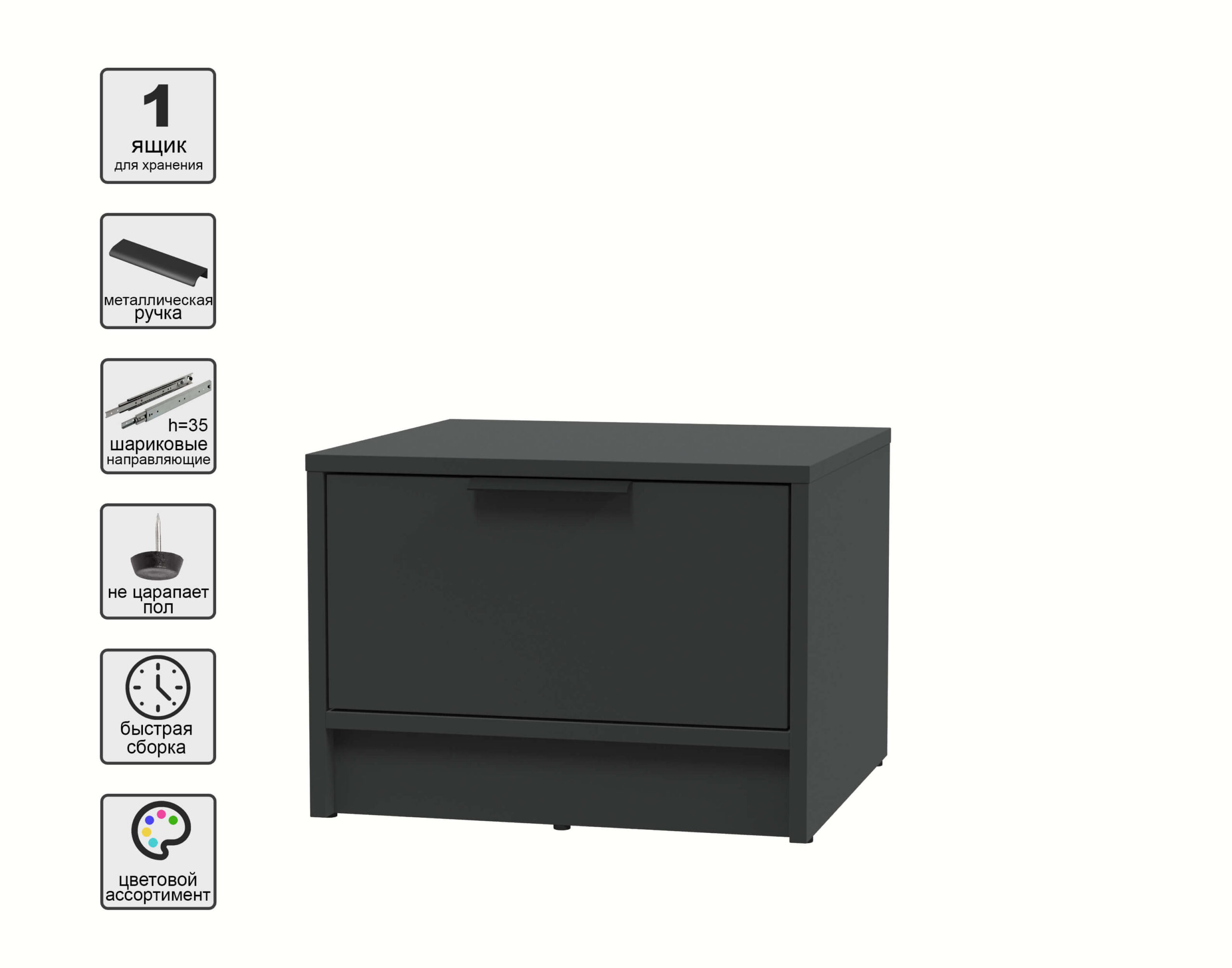ТУМБА ПРИКРОВАТНАЯ КТ-ТК1-35 (АНТРАЦИТ ЛДСП/ АНТРАЦИТ ЛДСП) Ш477 В348 Г451 - Yuta.by