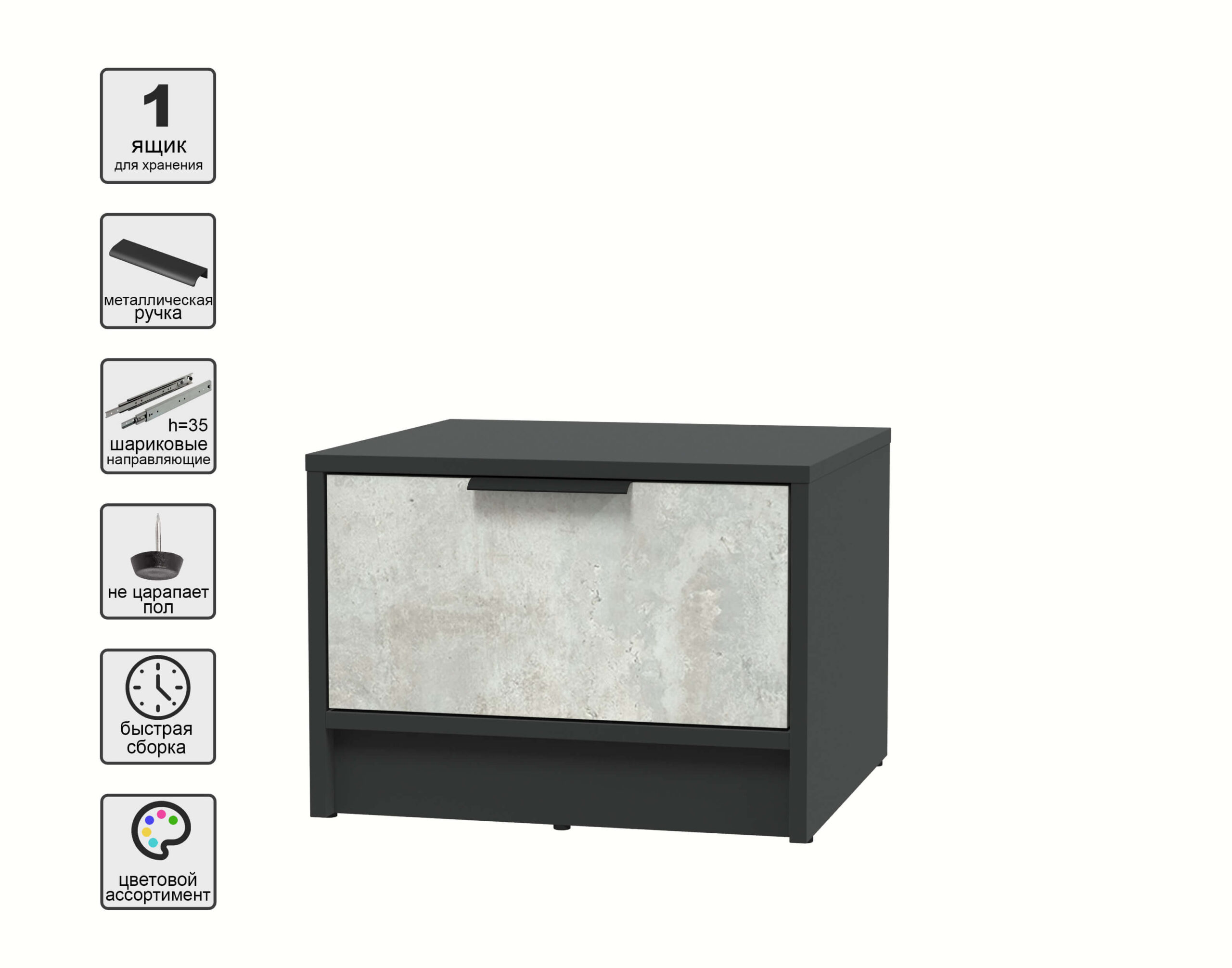 ТУМБА ПРИКРОВАТНАЯ КТ-ТК1-35 (АНТРАЦИТ ЛДСП/ БЕТОН ЛАЙТ ЛДСП) Ш477 В348 Г451