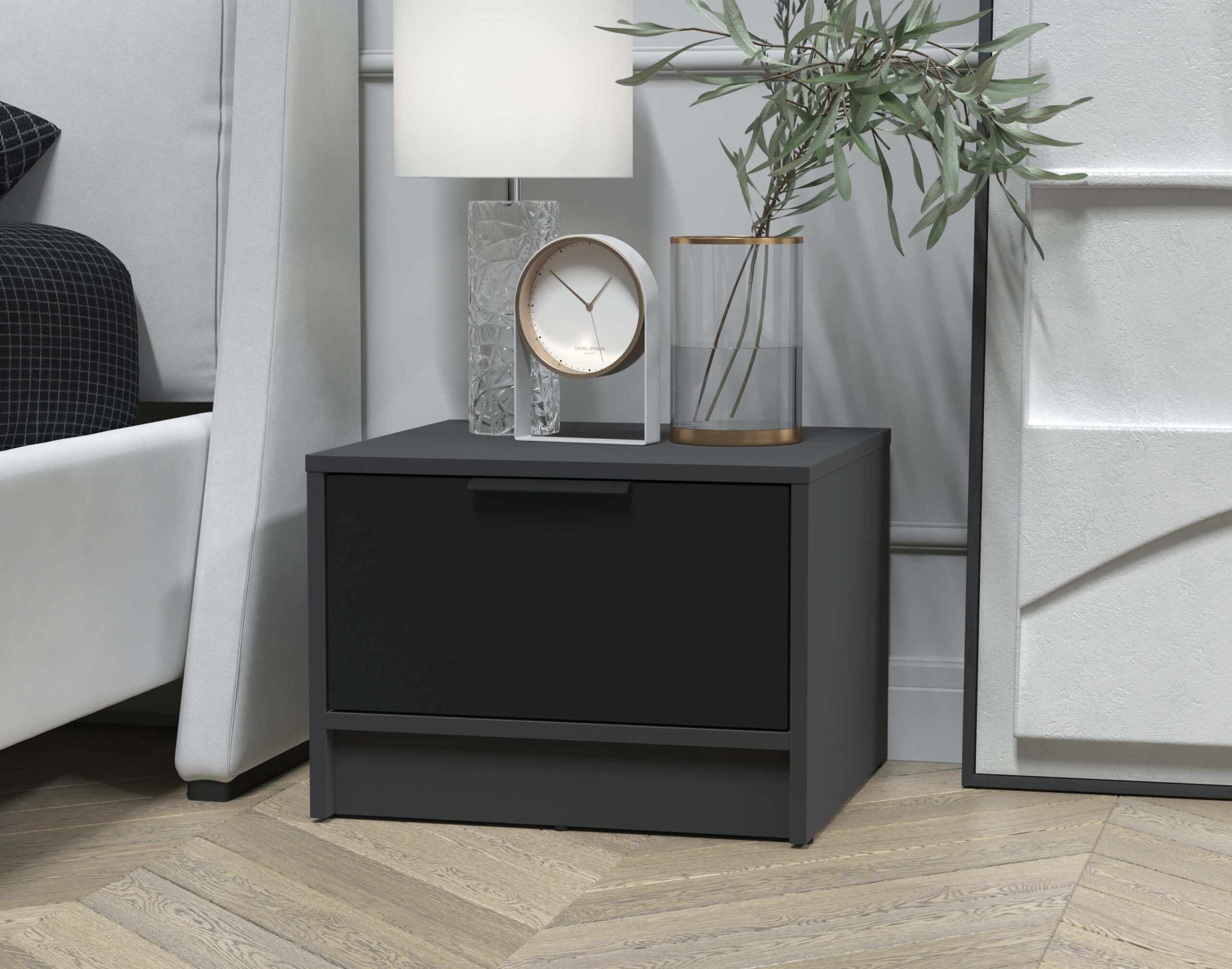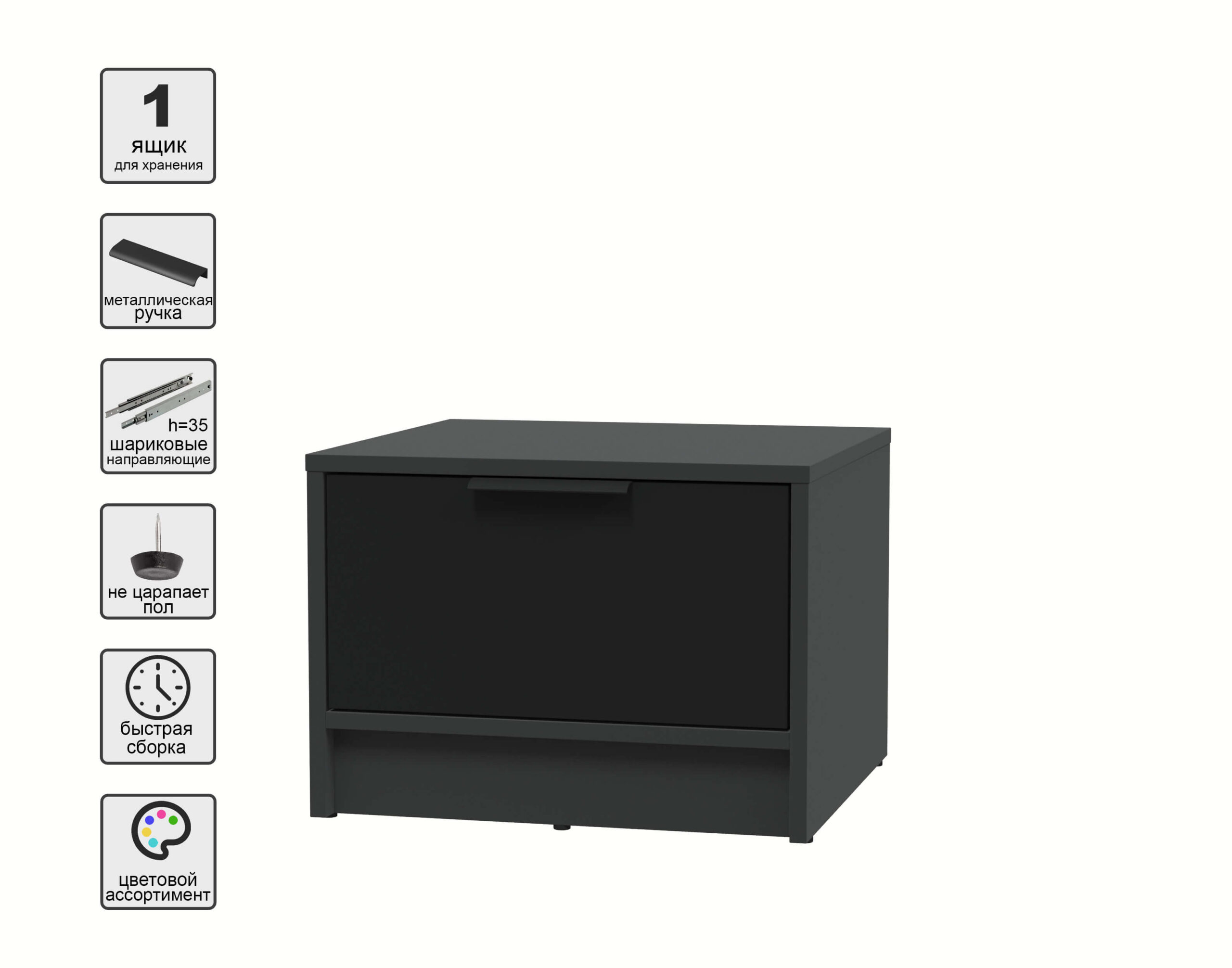 ТУМБА ПРИКРОВАТНАЯ КТ-ТК1-35 (АНТРАЦИТ ЛДСП/ ЧЕРНЫЙ ЛДСП) Ш477 В348 Г451 - Yuta.by