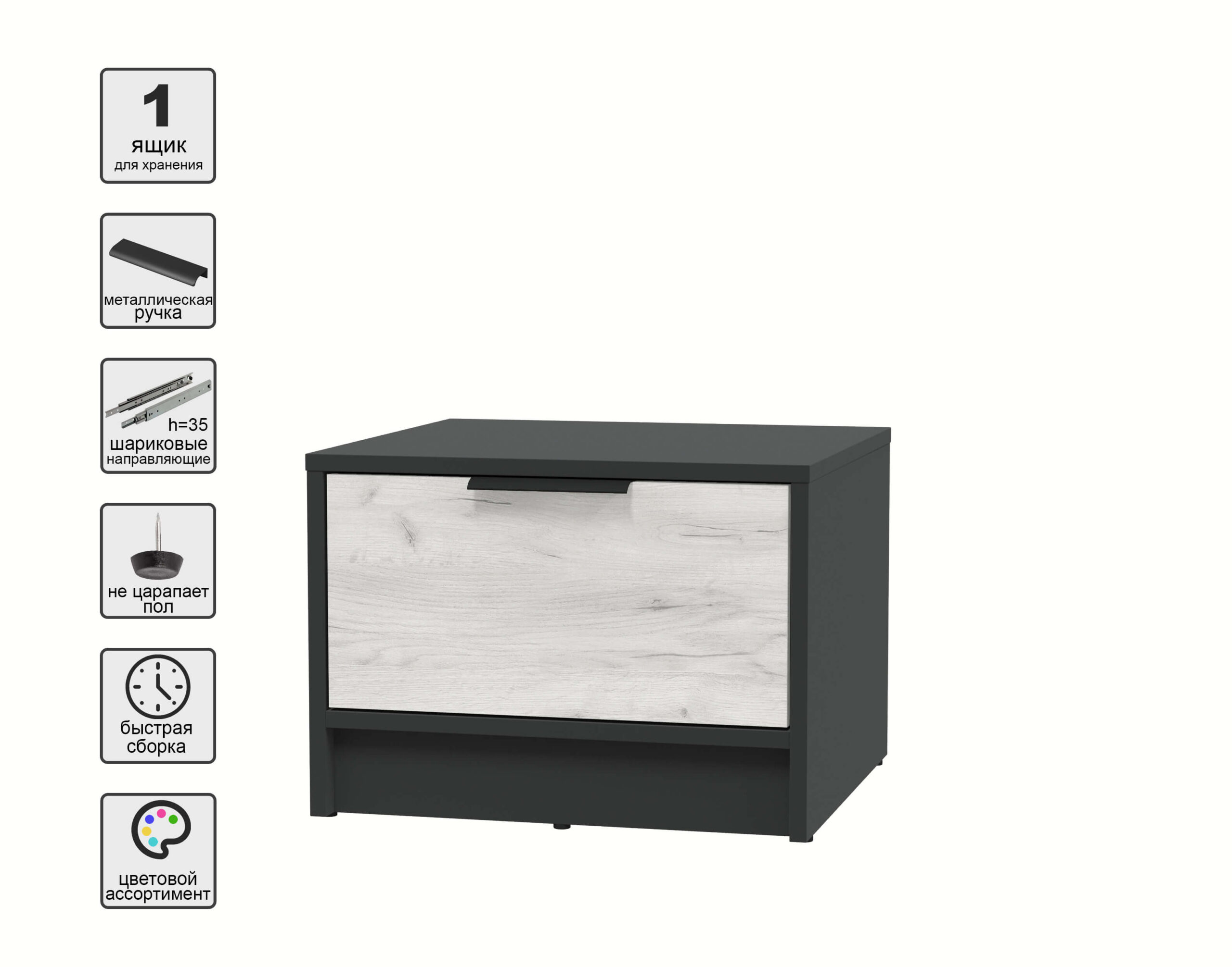 ТУМБА ПРИКРОВАТНАЯ КТ-ТК1-35 (АНТРАЦИТ ЛДСП/ ДУБ БЕЛЫЙ ЛДСП) Ш477 В348 Г451