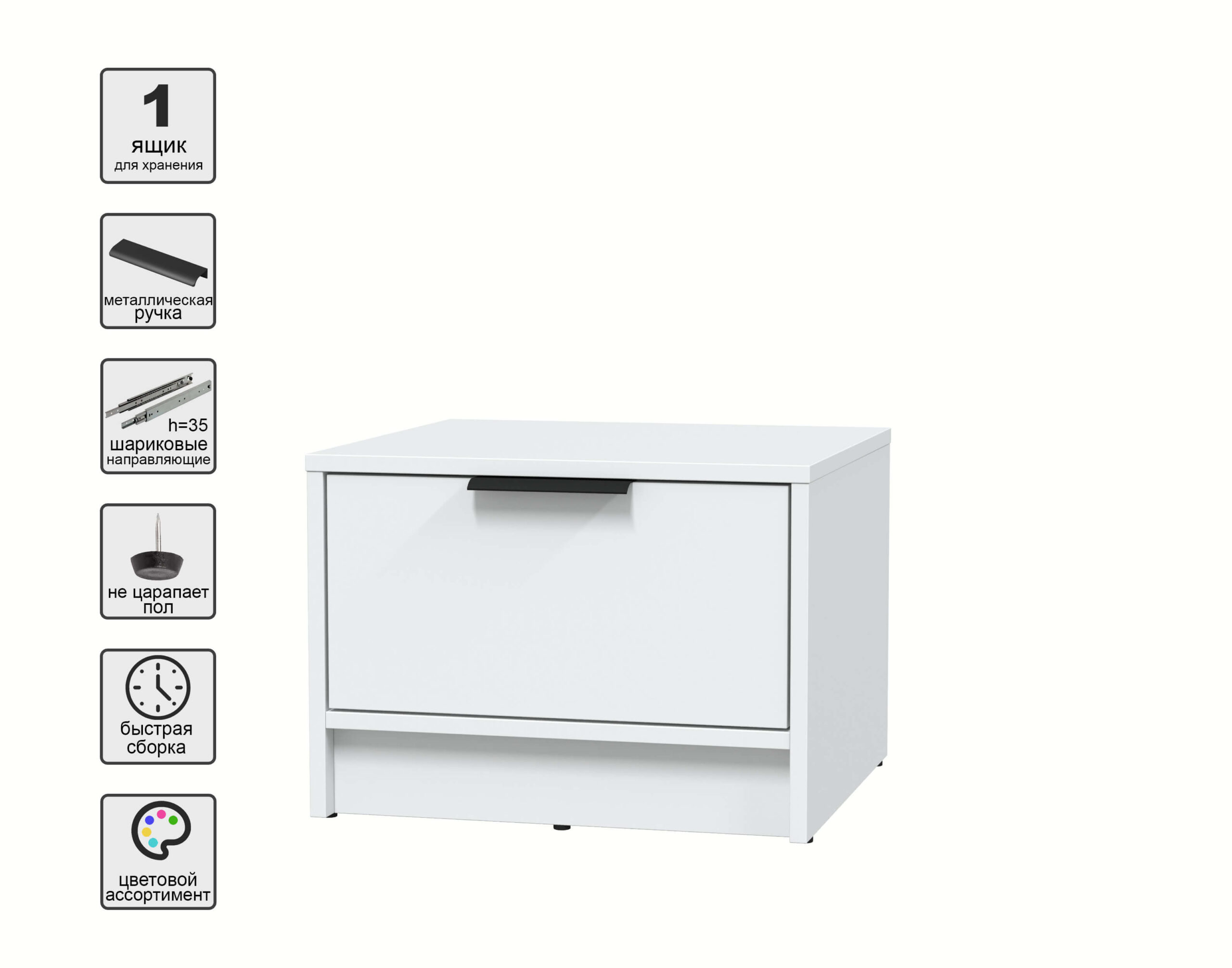ТУМБА ПРИКРОВАТНАЯ КТ-ТК1-35 (БЕЛЫЙ ЛДСП/ БЕЛЫЙ ПЛАТИНУМ ЛДСП) Ш477 В348 Г451 - Yuta.by