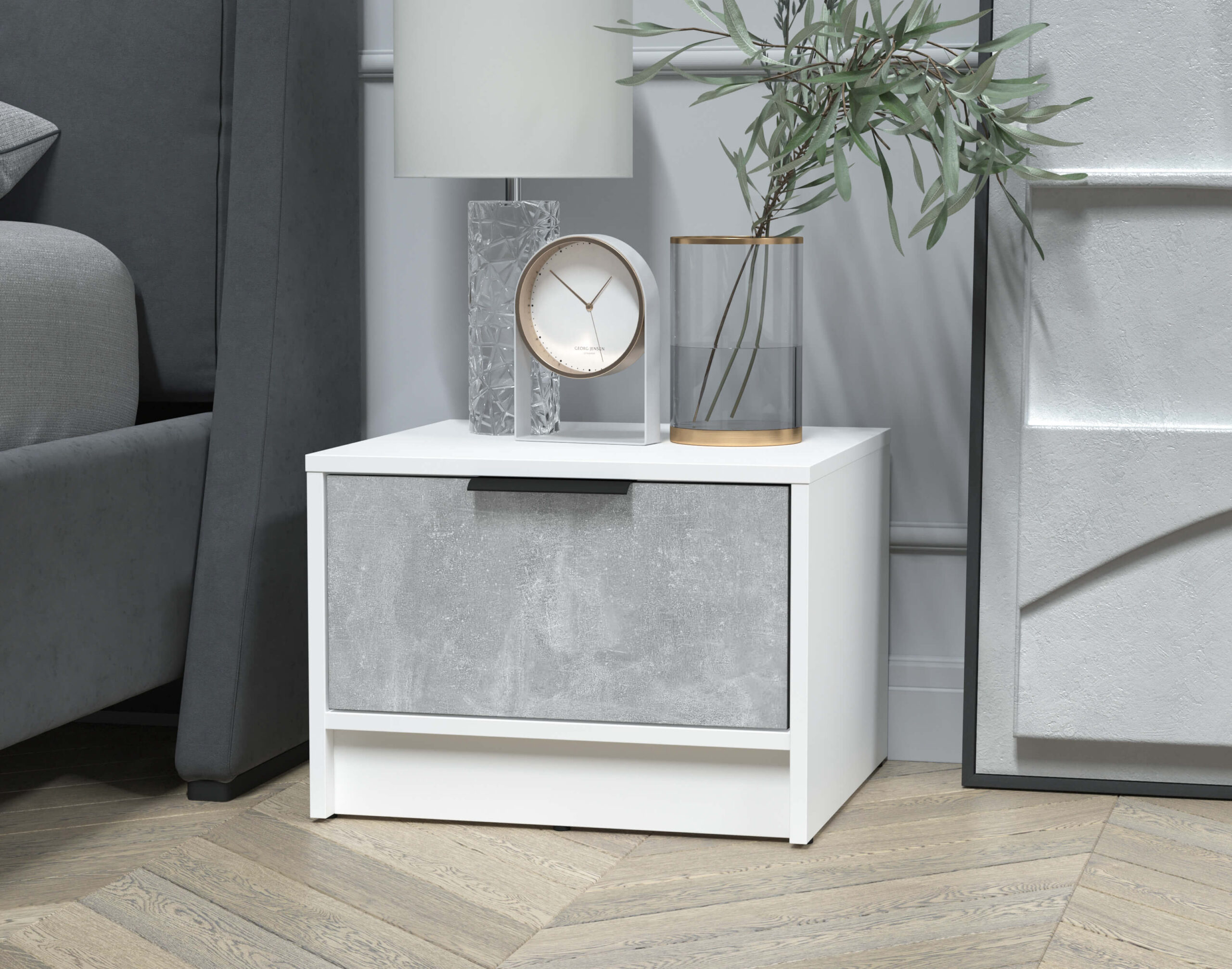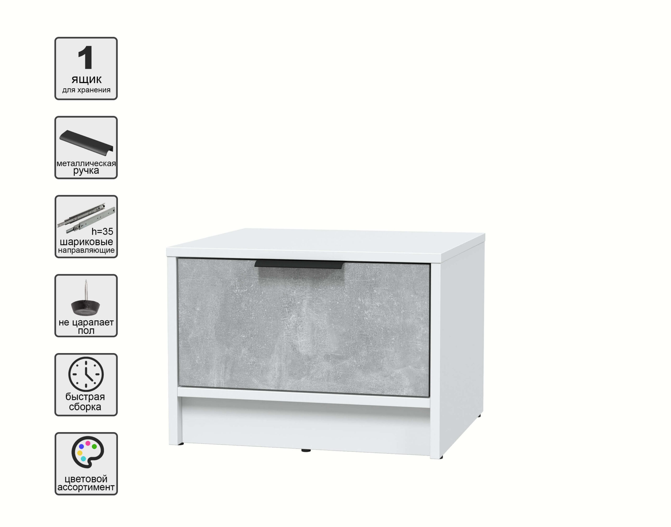 ТУМБА ПРИКРОВАТНАЯ КТ-ТК1-35 (БЕЛЫЙ ЛДСП/ БЕТОН ЛДСП) Ш477 В348 Г451 - Yuta.by