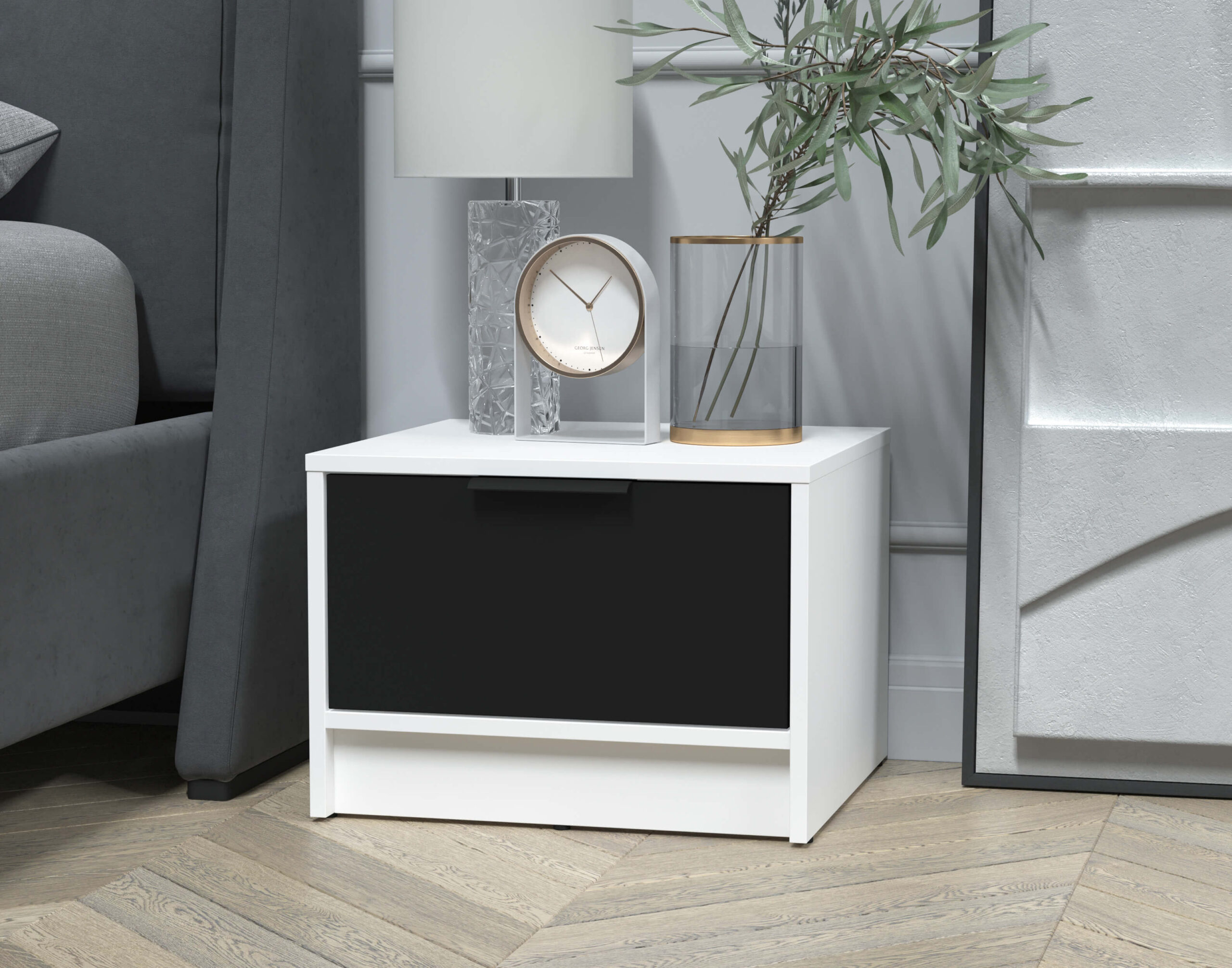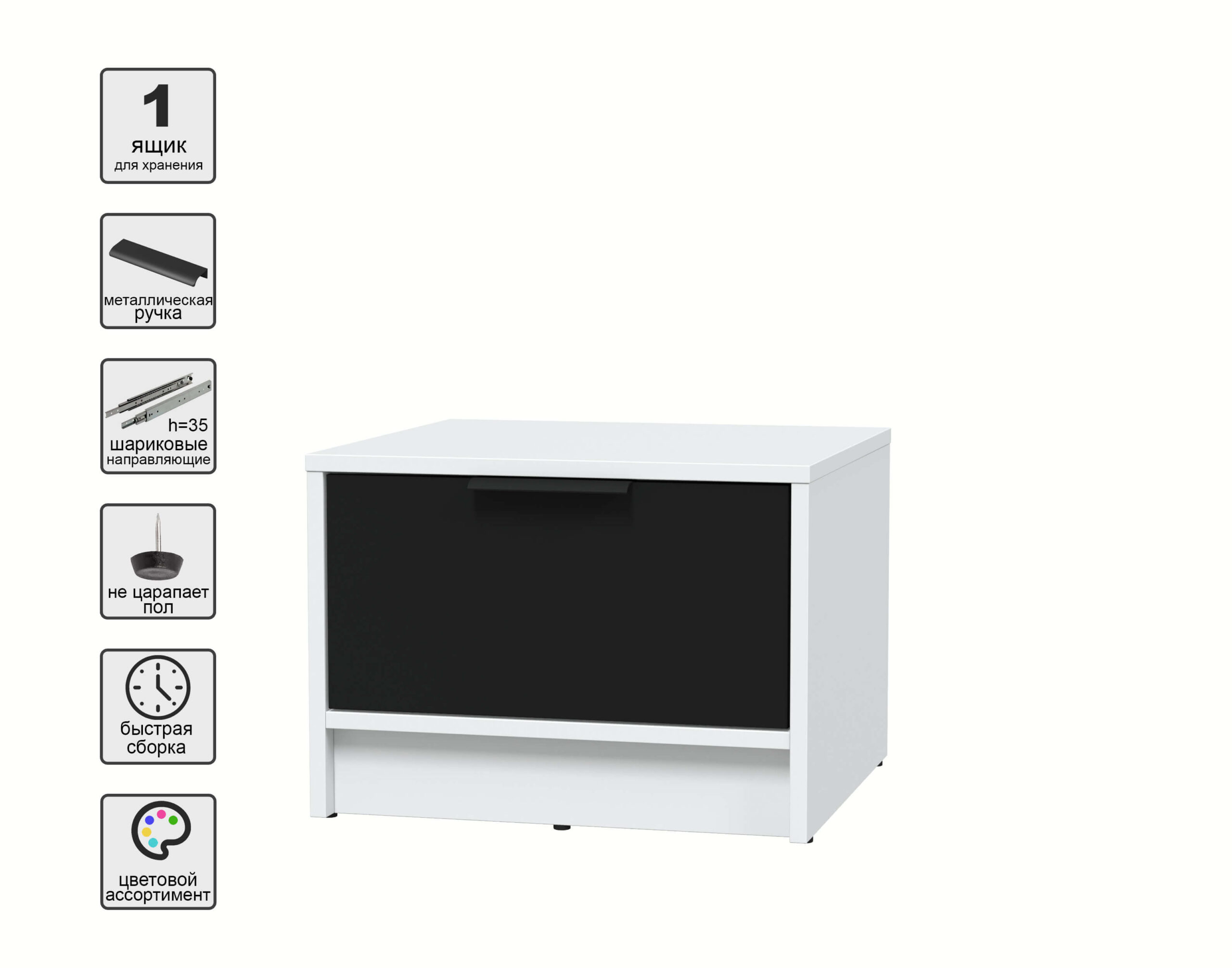 ТУМБА ПРИКРОВАТНАЯ КТ-ТК1-35 (БЕЛЫЙ ЛДСП/ ЧЕРНЫЙ ЛДСП) Ш477 В348 Г451 - Yuta.by